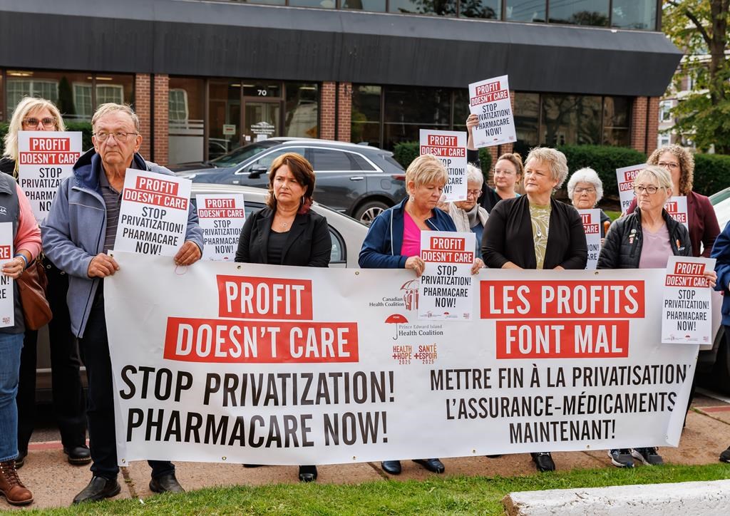 Avant l'annonce du plan, les membres de la Coalition canadienne de la santé de l'Î.-P.-É., la Fédération du travail et la Fédération canadienne des syndicats d'infirmières et infirmiers ont manifesté jeudi matin au centre-ville de Charlottetown, appelant à un régime universel d'assurance-médicaments de toute urgence et à la fin de la privatisation des services de santé.