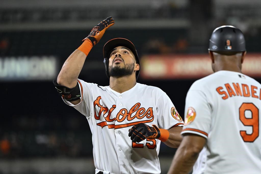 Les Orioles tiraient de l'arrière 5-3 en sixième manche avant que la rencontre soit stoppée pour 78 minutes en raison de la pluie. Au retour, les Orioles ont réduit l'avance de moitié grâce au double d'un point de Ryan Mountcastle. Odor a claqué la balle par-dessus la clôture contre Yimi Garcia (1-4) lors de la manche suivante.