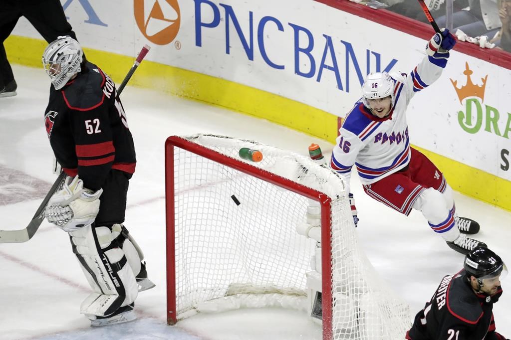 Les Rangers ont ouvert la marque alors qu'il ne restait que deux secondes à écouler à une pénalité à Sebastian Aho. Alexis Lafrenière a laissé la rondelle derrière lui à Fox et ce dernier a décoché un tir que Raanta n'a pas vu parce qu'il avait la vue voilée.