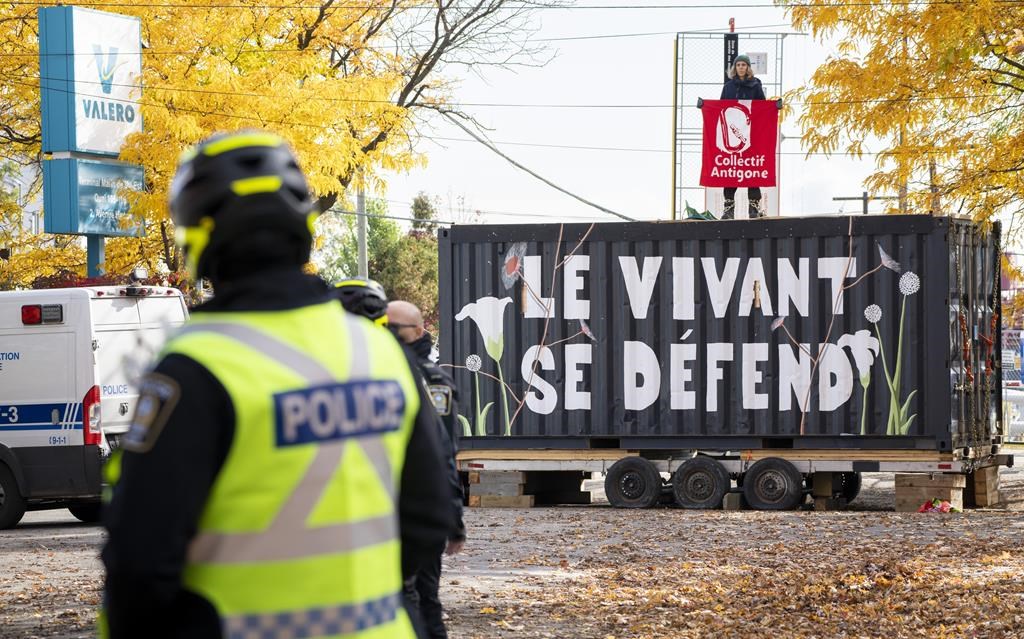«La transition énergétique ne se fera pas par les gouvernements. Ça va se faire par la population et c'est ce qu'on fait en ce moment. Chaque minute qui passe réduit de milliers de barils de pétrole les exportations canadiennes et sécurise notre eau et notre air», a notamment affirmé l'activiste qui s'est présenté par son prénom Olivier du haut de l'une de ces structures dans une vidéo publiée sur la page Facebook du Collectif Antigone vers 21 h 00.