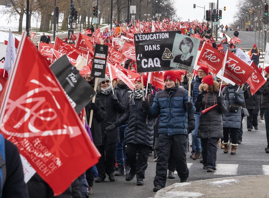 MONTRÉAL — Un rassemblement est prévu vendredi midi devant les bureaux du premier ministre François Legault à Montréal en appui au personnel du milieu de l'éducation en grève.