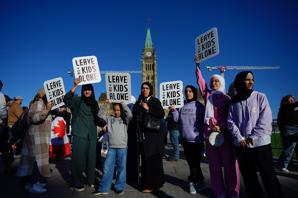 Les manifestations sont liées à certaines politiques au pays, notamment au Nouveau-Brunswick et en Saskatchewan, qui exigent dorénavant que les jeunes obtiennent le consentement de leurs parents avant que les enseignants puissent utiliser leurs prénoms et pronoms préférés à l'école.