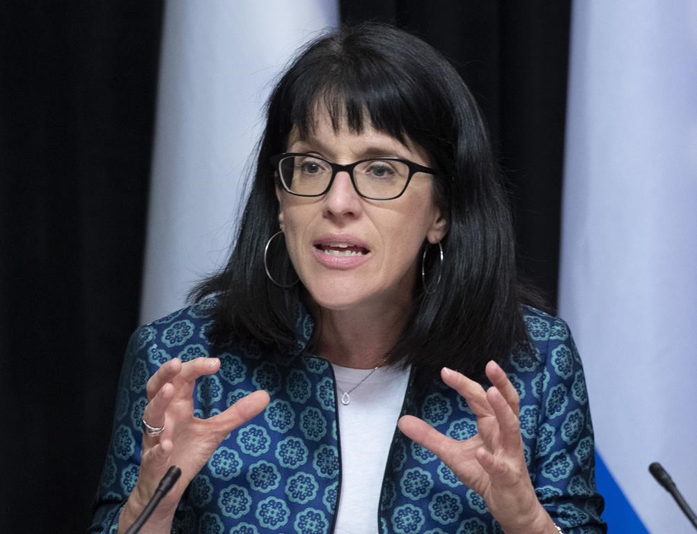 Mme LeBel était accompagnée pour l'occasion des ministres de la Santé et de l'Éducation, Christian Dubé et Bernard Drainville.
