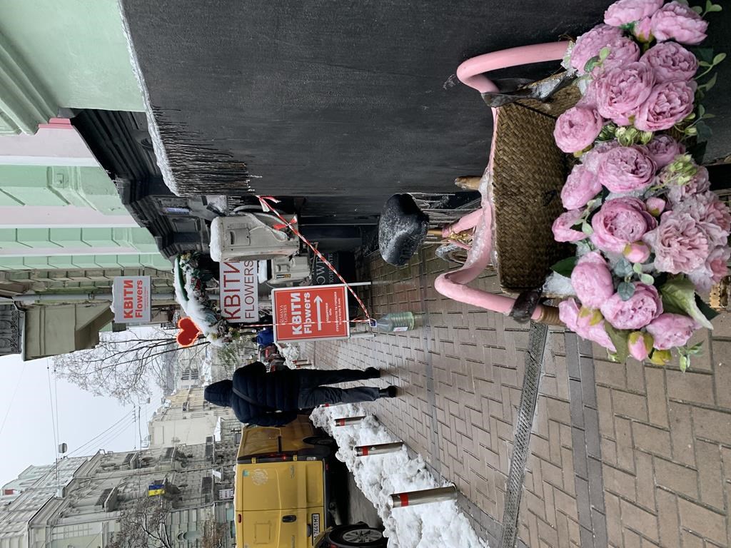 Les commerces, cafés, restaurants, marchés d’alimentation étaient ouverts. Il y avait beaucoup de circulation dans les rues. Malgré le froid et la grisaille, des passants et promeneurs s’arrêtaient, place Mykhailivska, près de la cathédrale Saint-Michel, pour jeter un œil sur les trophées de guerre de l’armée ukrainienne : plusieurs chars, obusiers autotractés et véhicules de transport de troupes russes complètement détruits.