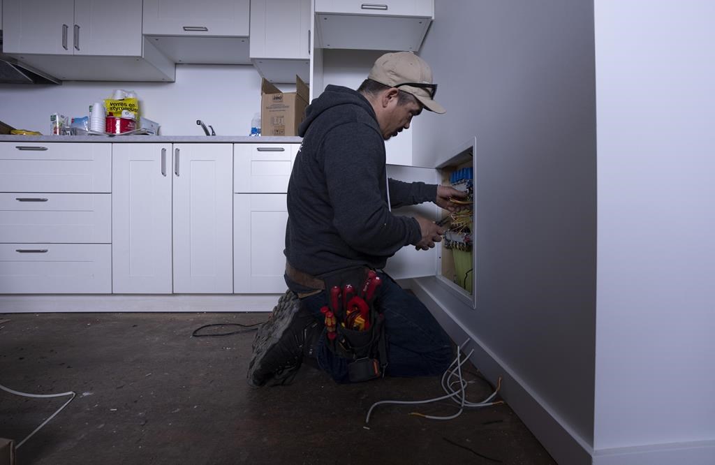 Mais par les temps qui courent, l'électricien travaille de 10 à 12 heures par jour, alors que les entreprises et les gouvernements se bousculent pour combler une pénurie critique de logements.