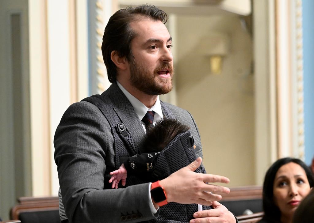 QUÉBEC — Du jamais vu à l'Assemblée nationale: un nouveau papa s'est levé en Chambre, avec son poupon dans un porte-bébé.
