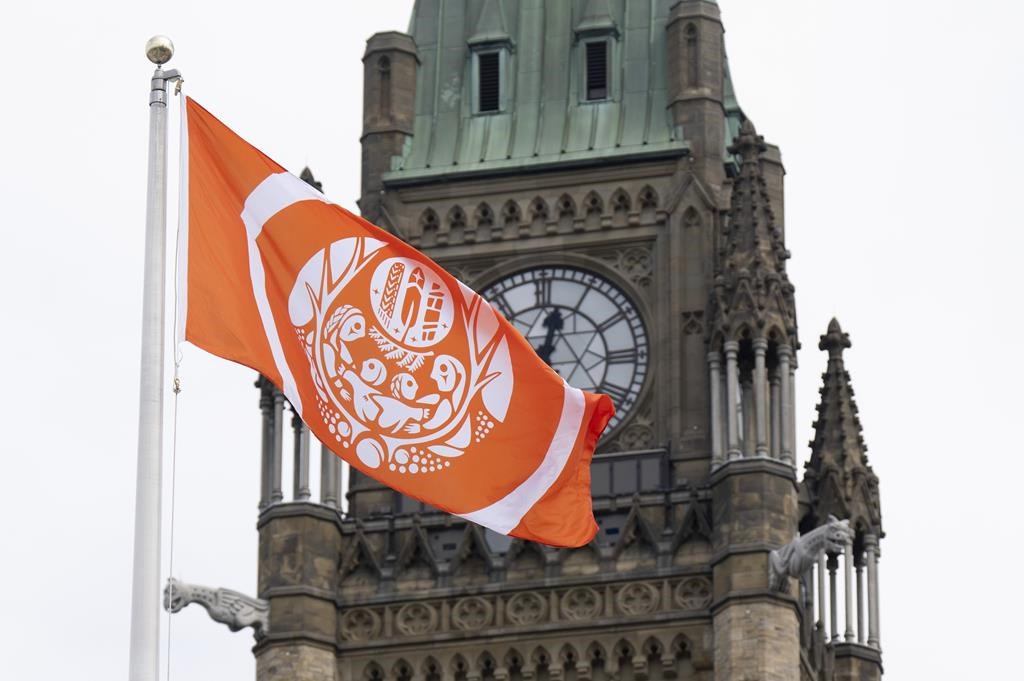 OTTAWA — Le gouvernement fédéral a hissé lundi le drapeau des survivants sur la colline du Parlement afin d'honorer les personnes autochtones touchées par le système des pensionnats au Canada.
