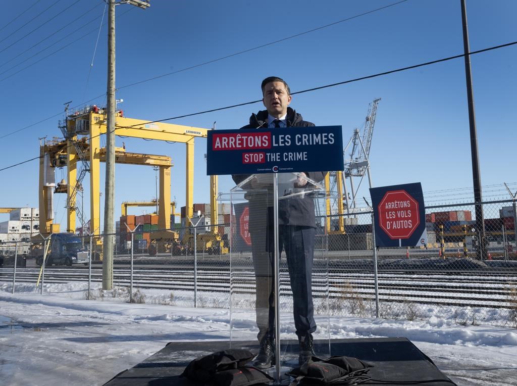 MONTRÉAL — Pierre Poilievre promet de rehausser la sécurité dans les ports, deuxième volet de son plan de lutte contre le vol de véhicules.