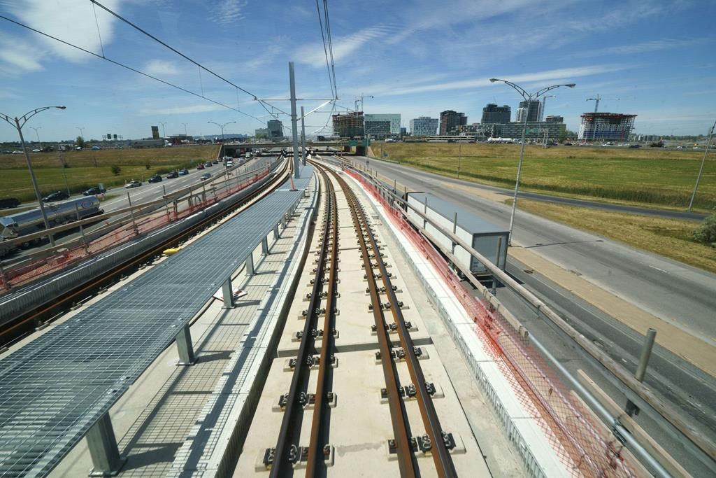 CDPQ Infra avait d'abord choisi un train aérien pour son métro léger, puisque ce mode permet d'éviter les intersections et les autres obstacles sur une voie partagée avec les autres véhicules. Le gain de temps était donc considérable par rapport au temps requis pour faire le même trajet en voiture ou en autobus.