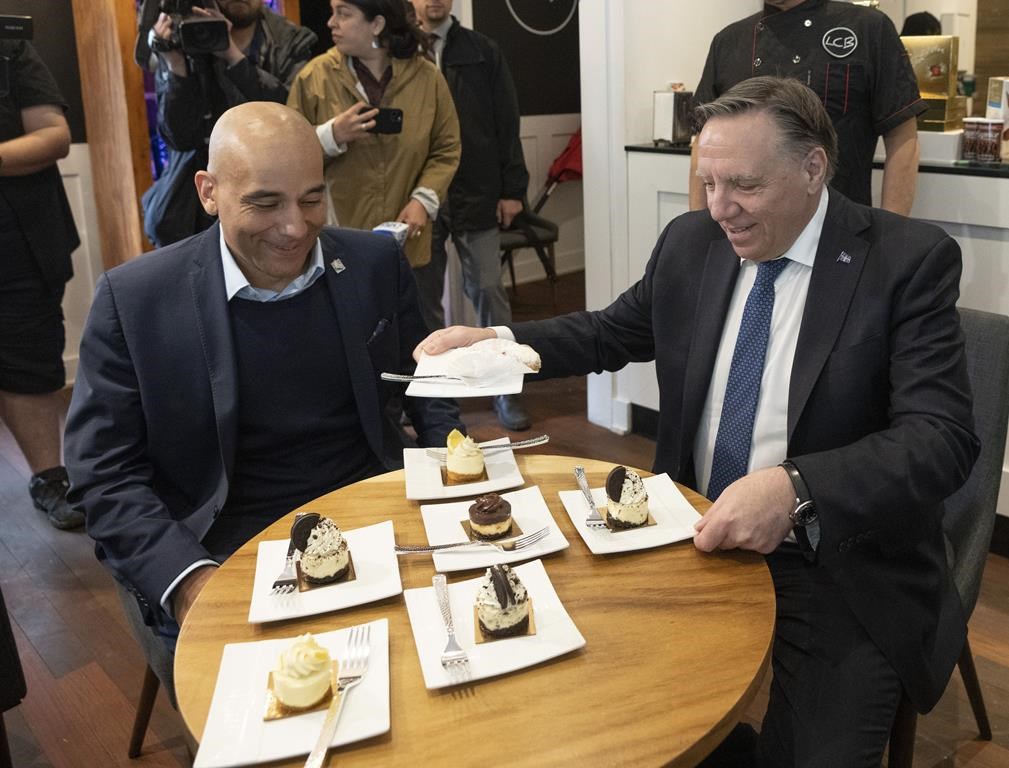 François Legault s'était déplacé à Laval pour discuter de différents sujets, dont le transport en commun, avec le maire Stéphane Boyer.