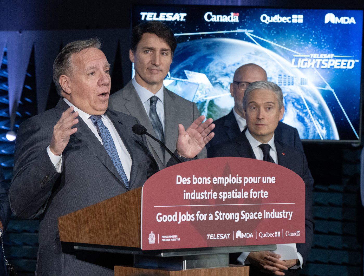 M. Legault a réitéré sa demande au premier ministre Justin Trudeau - présent au même événement - de réduire «rapidement» de moitié le nombre d'immigrants temporaires arrivant au Québec.