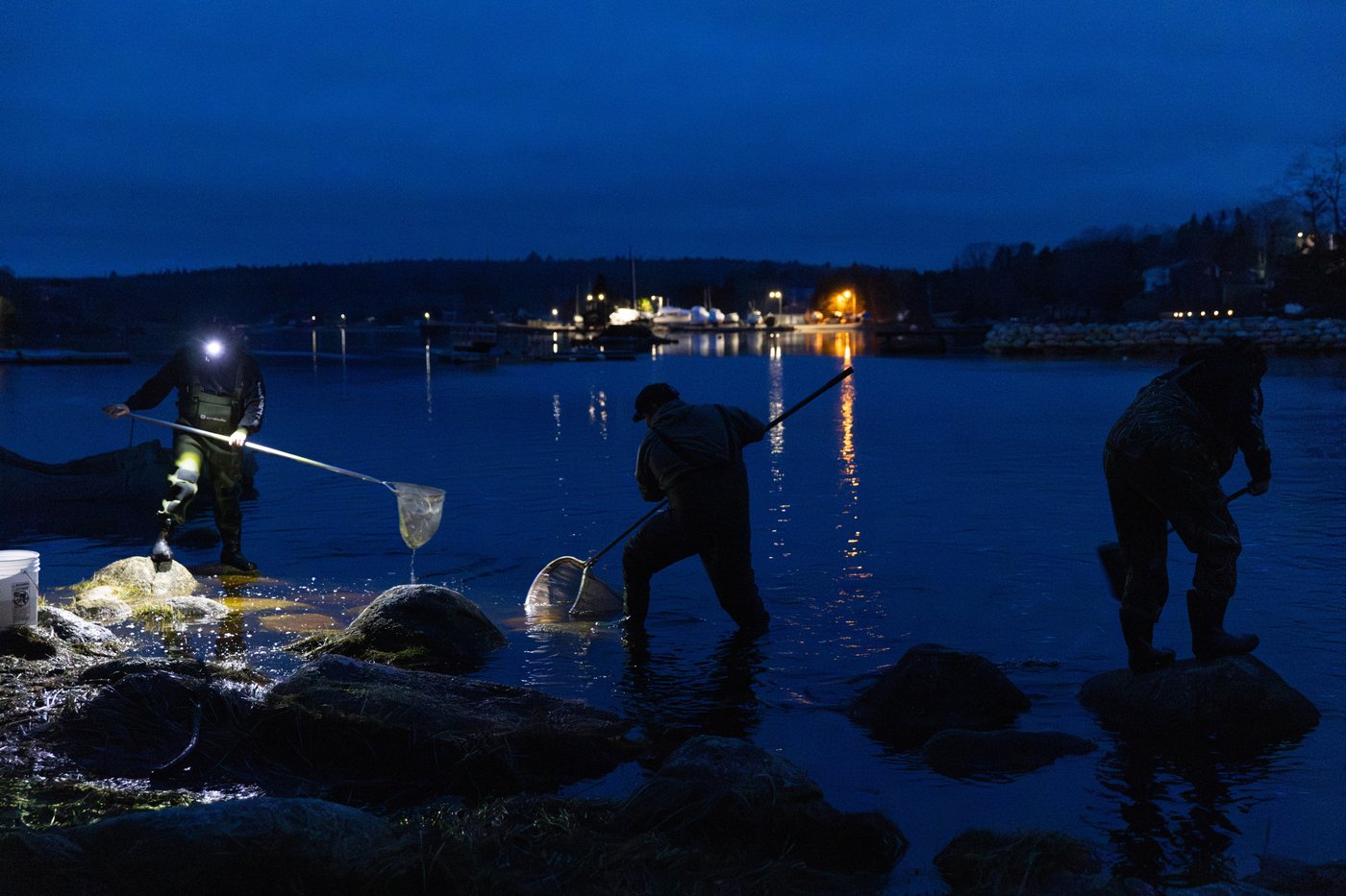 Marc Weldon, pêcheur commercial chevronné de l'Atlantic Elver Fishery, était également présent sur la rivière tard mardi soir. Il pêche la civelle depuis plus de vingt ans et se souvient de nombreuses années passées à travailler discrètement en groupes de deux ou trois. Avec le nouveau système d'Ottawa, le nombre de rivières auxquelles son entreprise est autorisée à accéder est passé de dix à cinq, a-t-il indiqué.