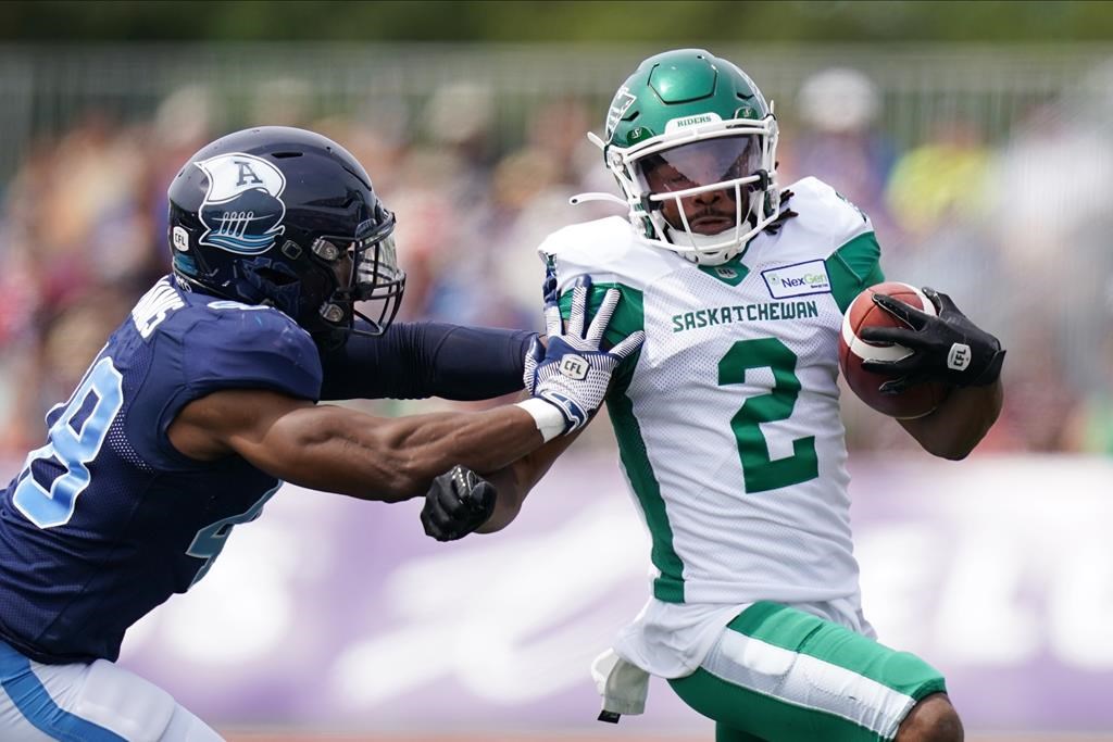 WOLFVILLE, N.-É. — Wynton McManis a retourné une interception sur 50 verges pour un touché, samedi, guidant les Argonauts de Toronto vers un gain de 30-24 aux dépens des Roughriders de la Saskatchewan.