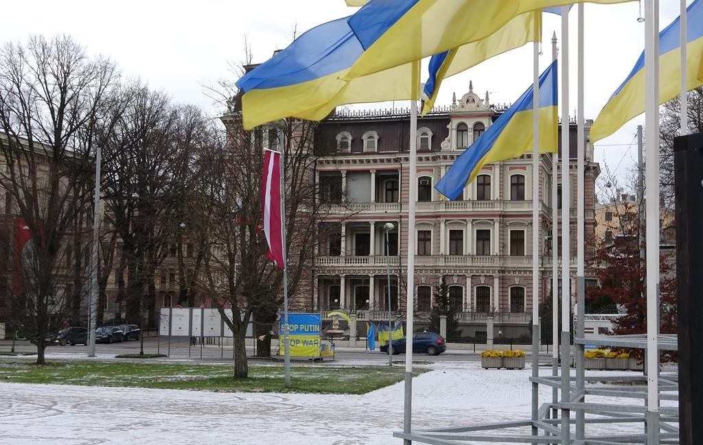 RIGA, Lettonie — On peut voir le drapeau ukrainien flotter partout, ou presque, dans les quartiers centraux de Riga, en Lettonie.