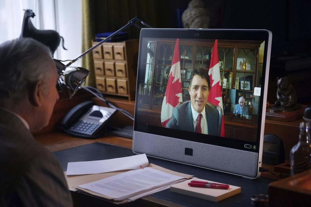 La famille royale affirme que le roi Charles a tenu une audience avec le premier ministre canadien par liaison vidéo, depuis le palais de Buckingham.