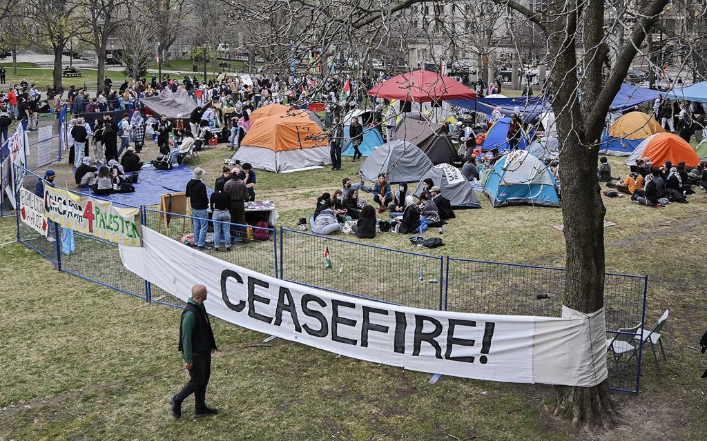 MONTRÉAL — Des militants étudiants propalestiniens à Montréal ont installé un camp sur le terrain de l'Université McGill ce week-end, à la suite d'une vague de manifestations similaires sur les campus des États-Unis.