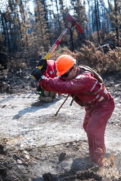 Les Forces armées canadiennes, qui ont aussi déployé certains de leurs membres sur le terrain dans la province cette semaine, ont publié une photo sur les réseaux sociaux dans laquelle on pouvait voir des soldats utiliser des haches pour «briser des points chauds» et couper des broussailles calcinées et encore fumantes.