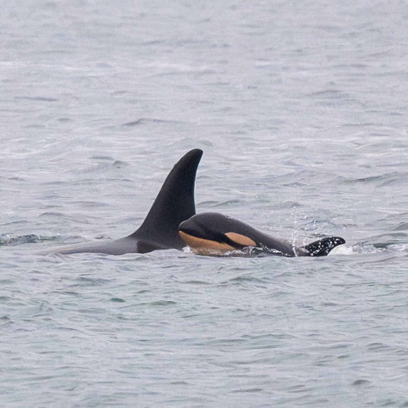 Le centre mentionne avoir observé et documenté une orque nouveau-née nageant aux côtés d'une baleine connue sous le nom de J40, et il s'agirait probablement de son premier bébé orque.