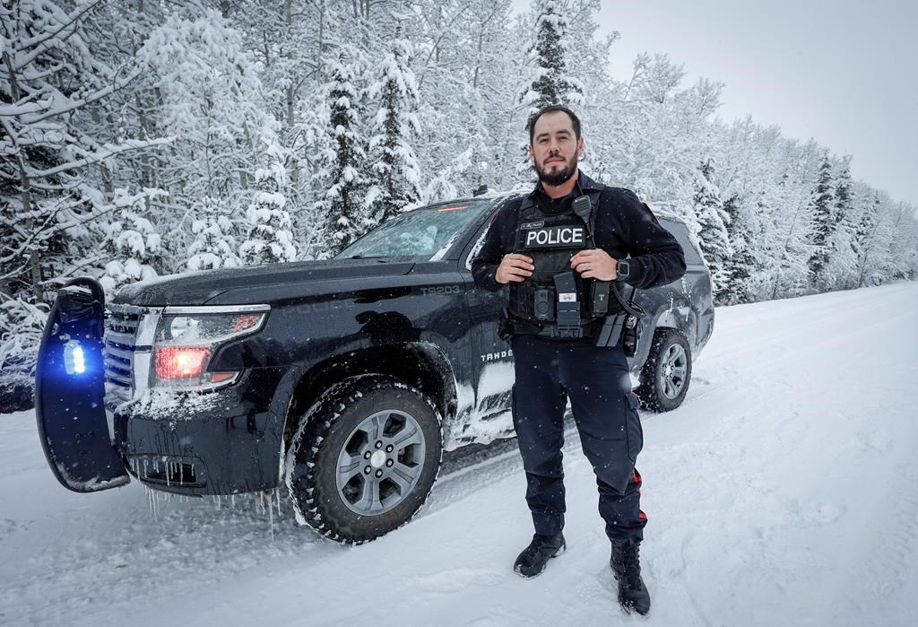 TSUUT'INA FIRST NATION — L'agent Kenny Big Plume connaît comme sa poche les routes enneigées qui traversent la communauté Tsuut'ina.