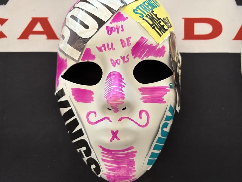 CALGARY — L'extérieur du masque était décoré des mots «les gars seront des gars, pouvoir, rois». À l'intérieur, on pouvait lire «douleur, suicidaire, besoin d'amour».