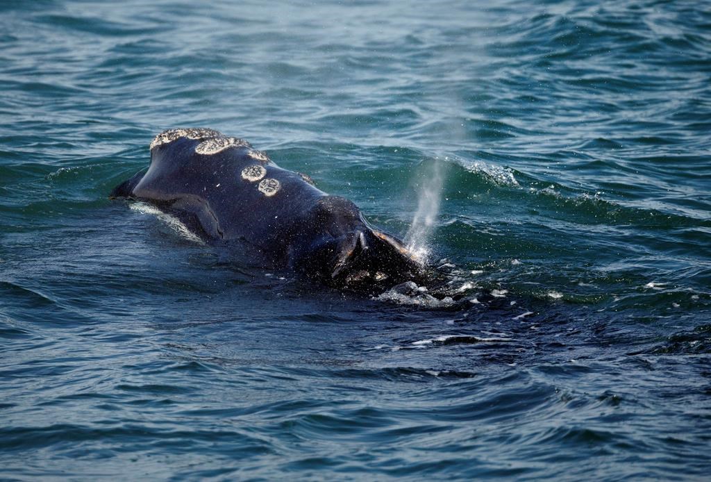 La première baleine noire aperçue entrant dans les eaux canadiennes cette saison a été vue le 4 mai par l'équipage à bord d'un avion de surveillance qui survolait le golfe, au nord des Îles-de-la-Madeleine.