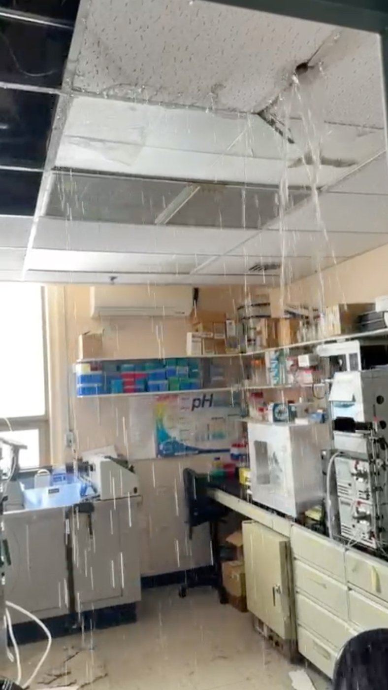 Une vidéo de l'inondation du 26 janvier a largement circulé dans les médias, montrant l'eau qui s'abattait sur de l'équipement de laboratoires, tandis qu'un panneau du plafond détrempé cédait. Les autorités locales ont déclaré que l'incident était grave et qu'il avait endommagé le deuxième étage et le rez-de-chaussée du pavillon Lehmann. Ils ont confirmé que d'importants dégâts d'eau se sont produits à quatre endroits différents dans un couloir du deuxième étage du pavillon Lehmann.