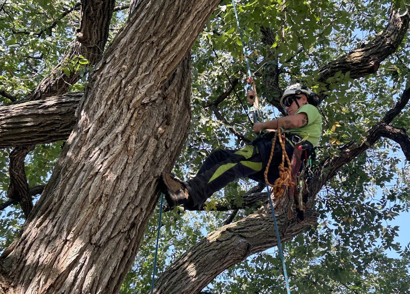 «Au milieu de la vingtaine, j'avais essayé un certain nombre d'emplois différents, principalement des emplois à forte intensité de main-d'œuvre, mais rien ne comblait vraiment mon âme de la manière dont j'en avais besoin. Et puis quelqu'un m'a dit qu'on pouvait grimper dans un arbre (pour travailler), et cela m'a semblé être une bonne voie à suivre», dit-elle tout en taillant un grand chêne qui domine une maison de deux étages dans l'ouest de Winnipeg.