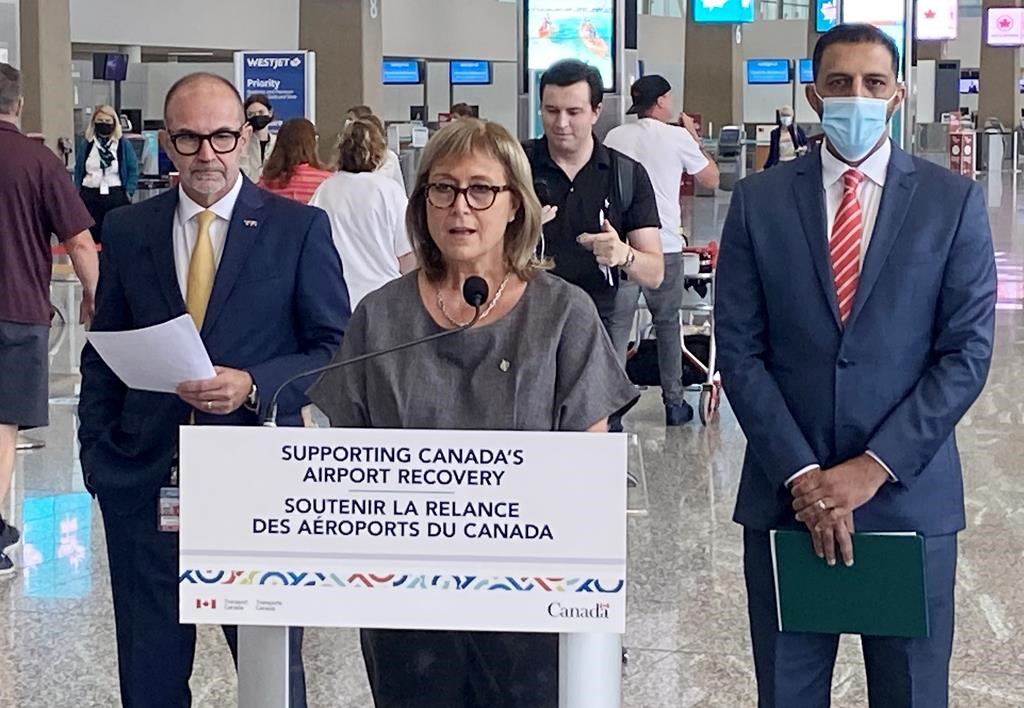 Mme Koutrakis a annoncé près de 2 millions $ pour aider l'aéroport international de Calgary à améliorer les horaires de vol actuels et futurs et les temps de connexion entre les vols, ainsi qu'à établir des couloirs pour permettre la distanciation physique.