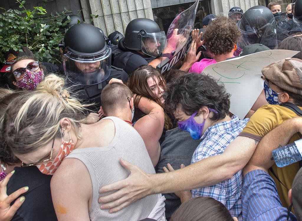 HALIFAX — Une femme de 26 ans accusée d'avoir agressé des policiers lors du démantèlement d'un campement improvisé à Halifax, en 2021, a nié avoir intentionnellement donné des coups de pied.