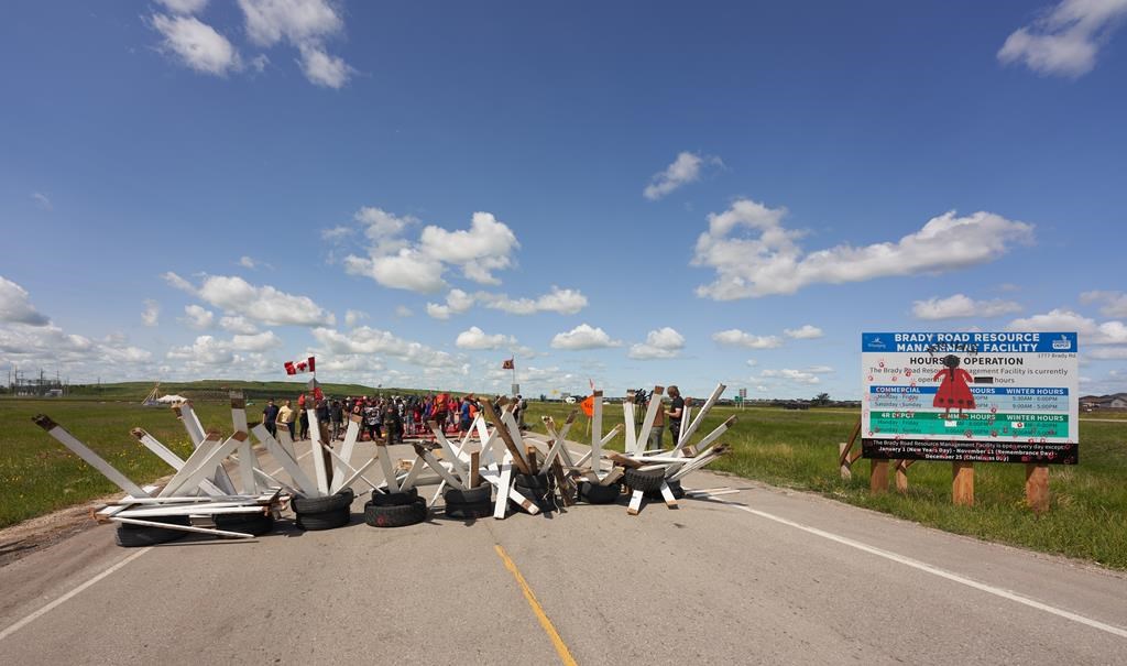 Le blocage a commencé la semaine dernière après que la première ministre du Manitoba, Heather Stefanson, a annoncé que la province ne soutiendrait pas une fouille de l'autre décharge, citant une étude selon laquelle cela pourrait coûter jusqu'à 184 millions $ et exposer les travailleurs à des produits chimiques toxiques et à l'amiante.