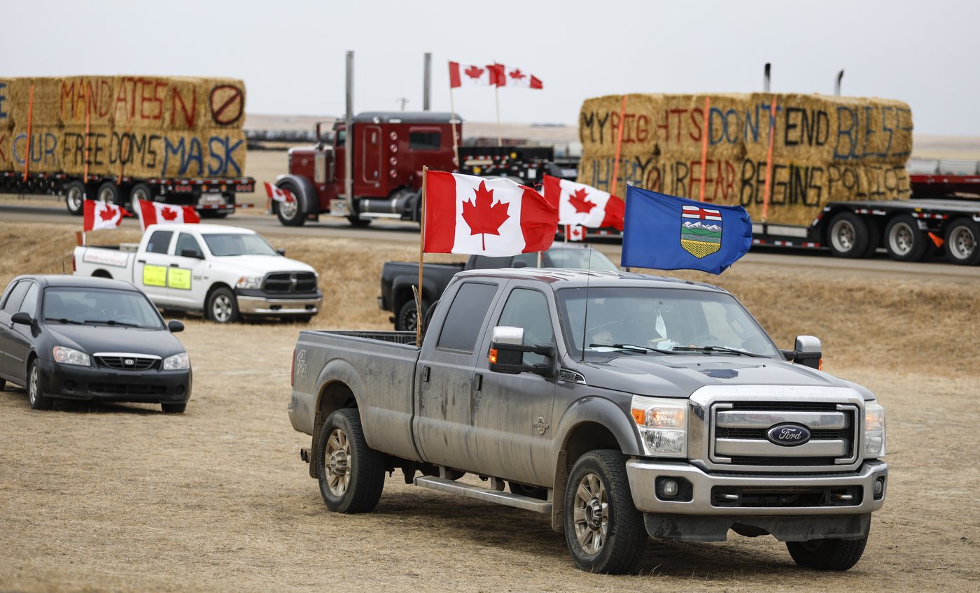 Le blocus de la frontière par des poids lourds avait été organisé pour manifester contre les règles sanitaires et la vaccination obligatoire de certains Canadiens pendant la pandémie de COVID-19. Les manifestants avaient empêché la libre circulation des véhicules au poste frontalier canado-américain de Coutts pendant deux semaines.