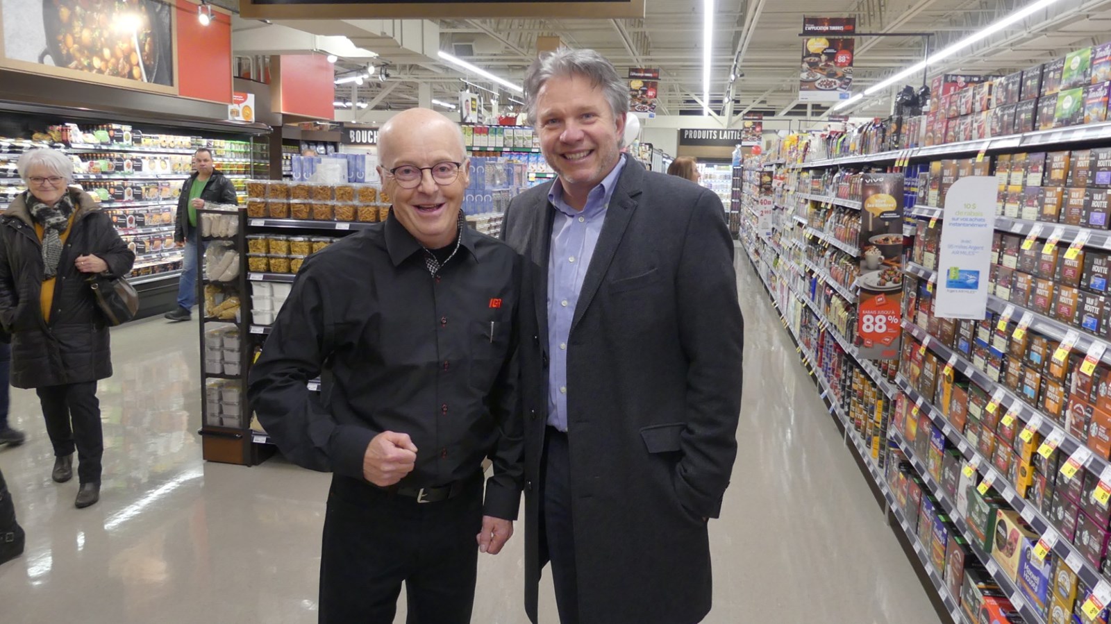 À droite, Jean-Pierre Labbé, qui avec ses soeurs Christine et Stéphanie, est propriétaire de l'immeuble que leur père Jacques a fait construire en 1976. À ses côtés, Raymond Poulin, le plus ancien employé du supermarché.
