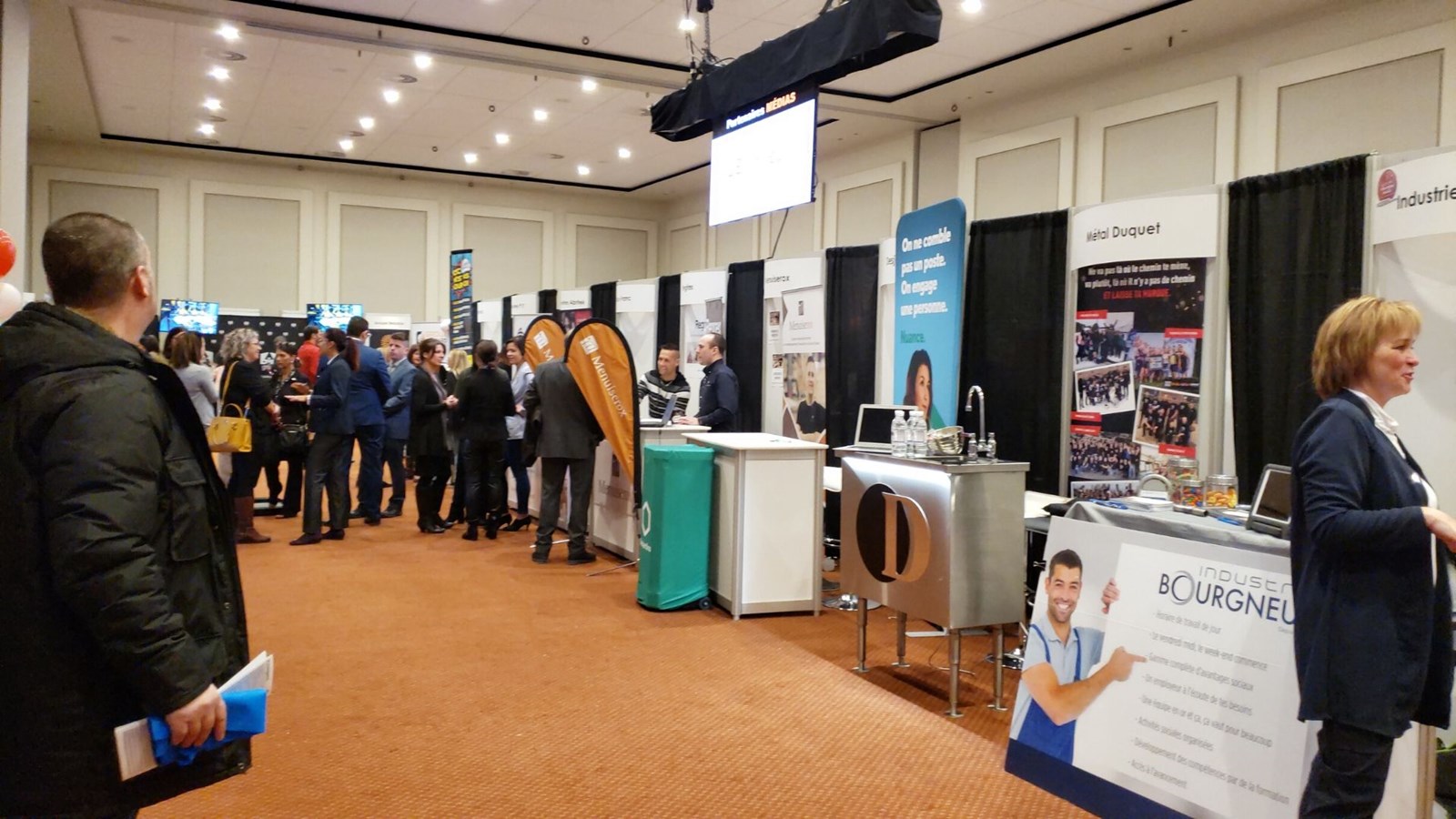Les visiteurs peuvent rencontrer 80 entreprises, 6 organismes en employabilité et 3 centres de formation de la région qui sont toujours à la recherche de main-d’œuvre. Par manque d'espace, certains kiosques ont été installé dans une salle au deuxième étage de l'hôtel. Ouverts de 10 h à 20 h, les différents kiosques permettent aux chercheurs d’emplois de bien s’informer.