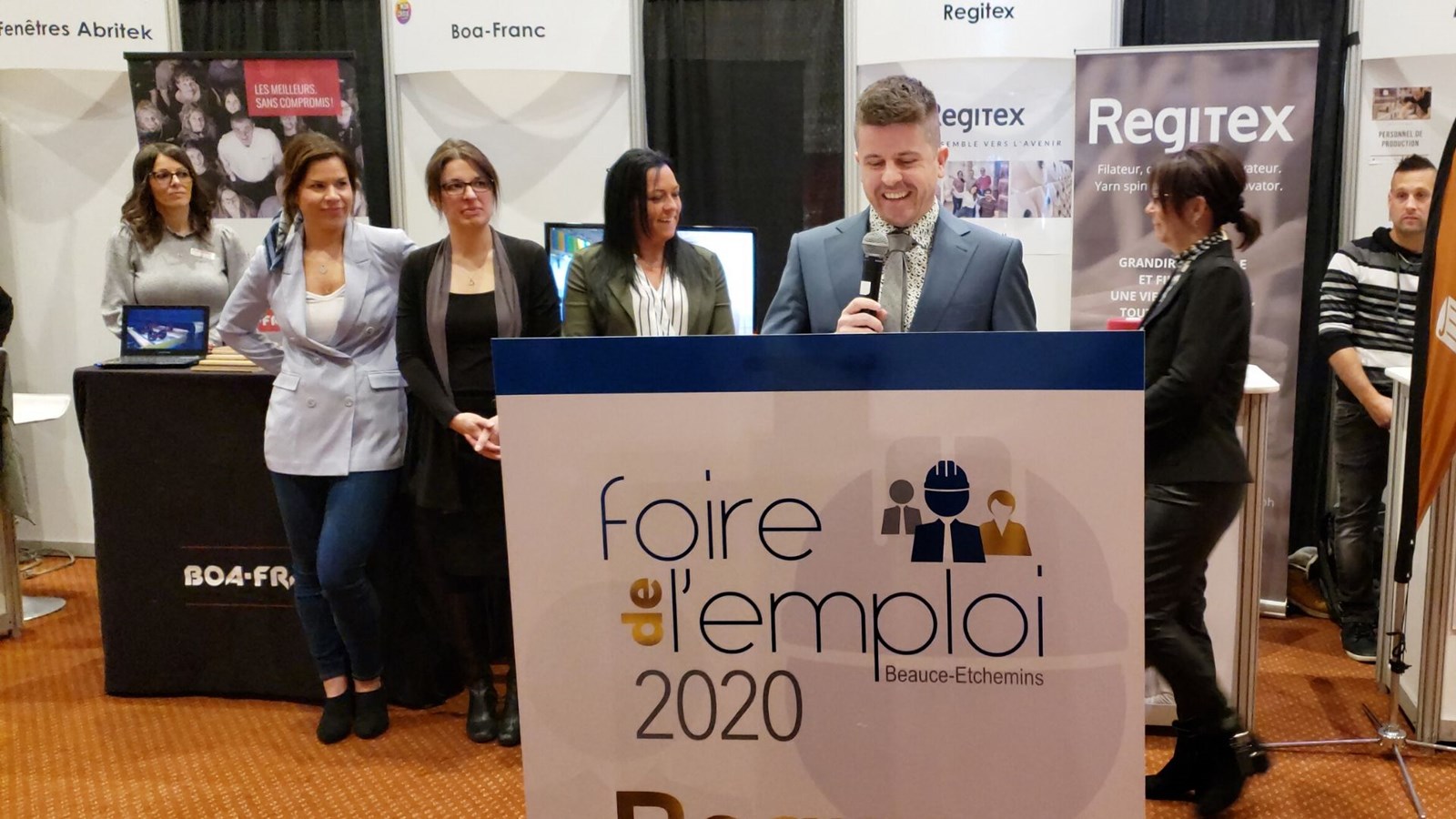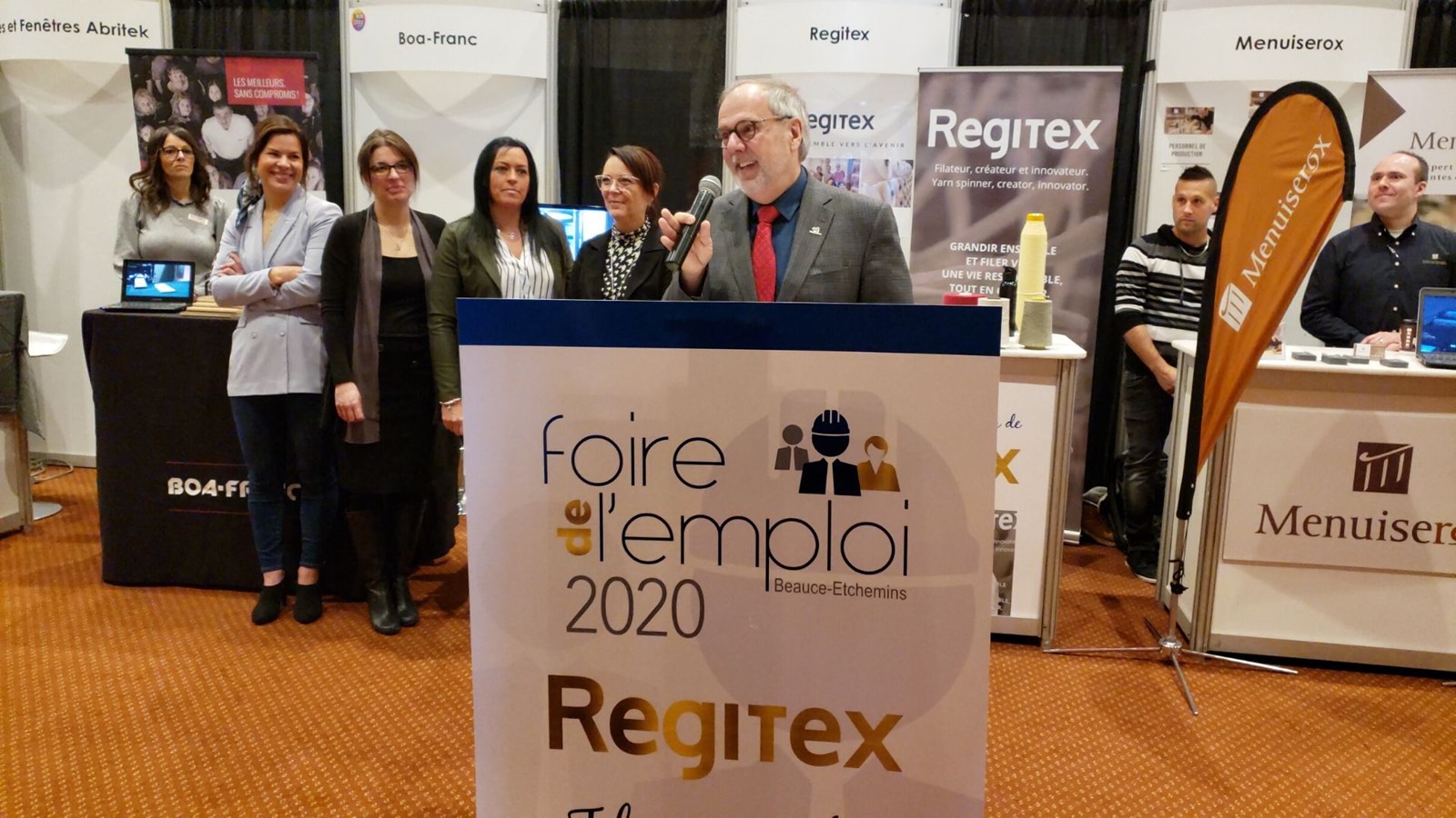 La 14e Foire de l’emploi Beauce-Etchemins se déroule tout le long de la journée au centre des congrès du Georgesville. La cérémonie d’ouverture s’est tenue sous la présidence d’honneur de l’entreprise Regitex.