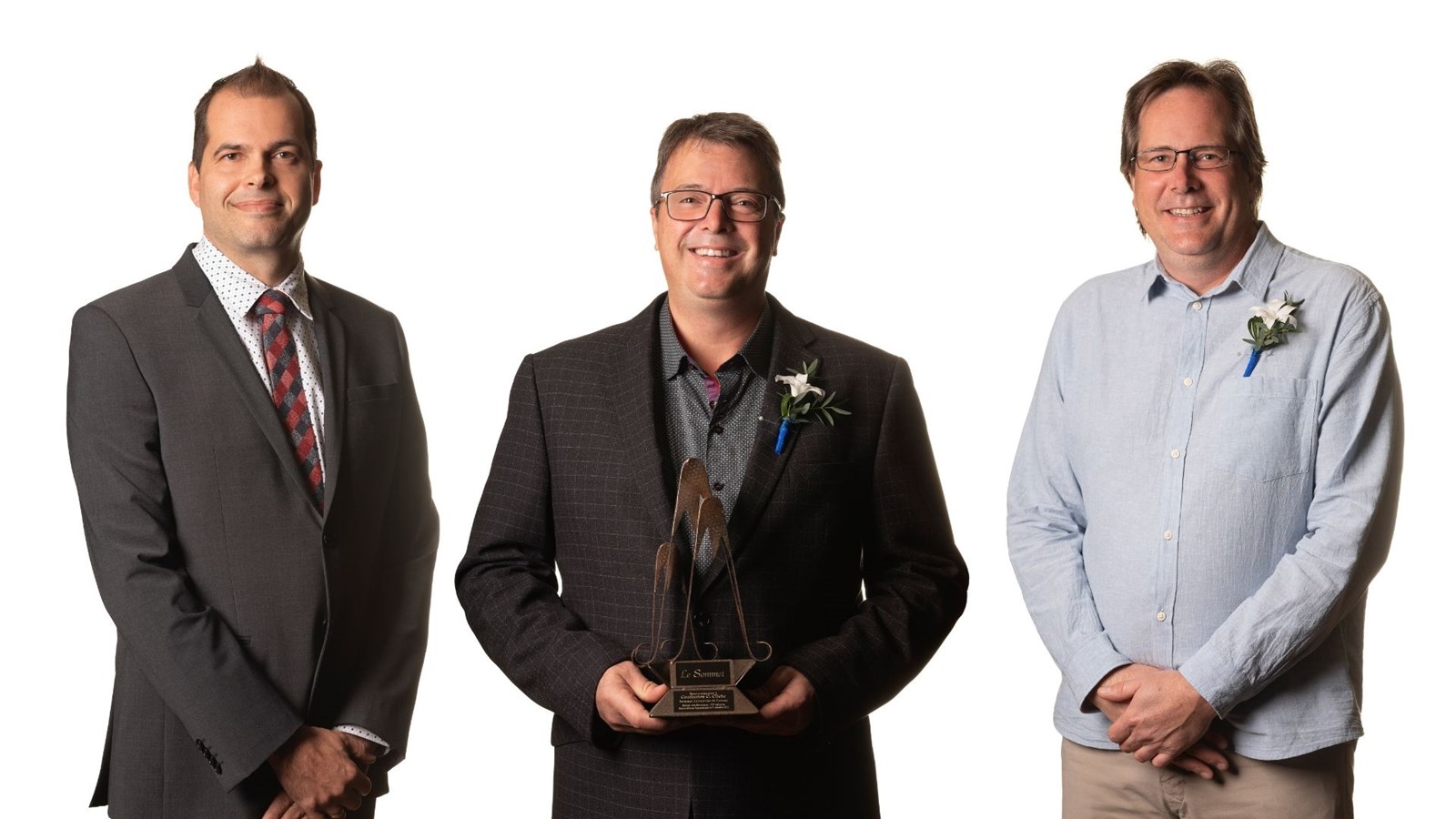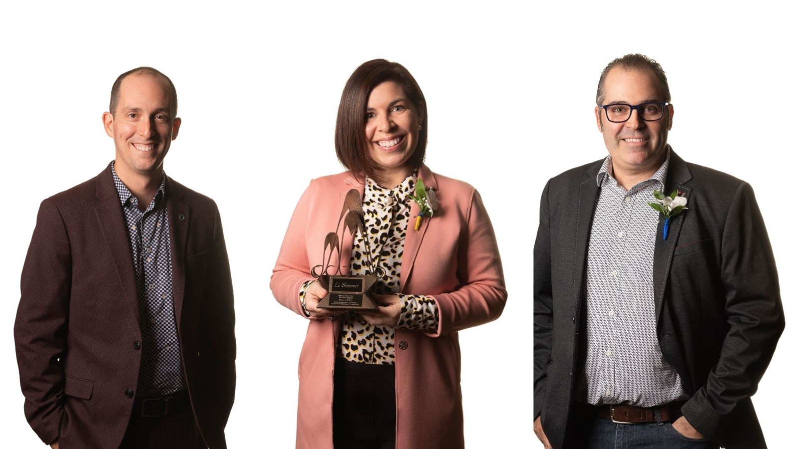 Sommet Enracinement: Jasmin Grondin, Blanchette Vachon, et André Spénard, lauréat du Sommet Enracinement 2021.