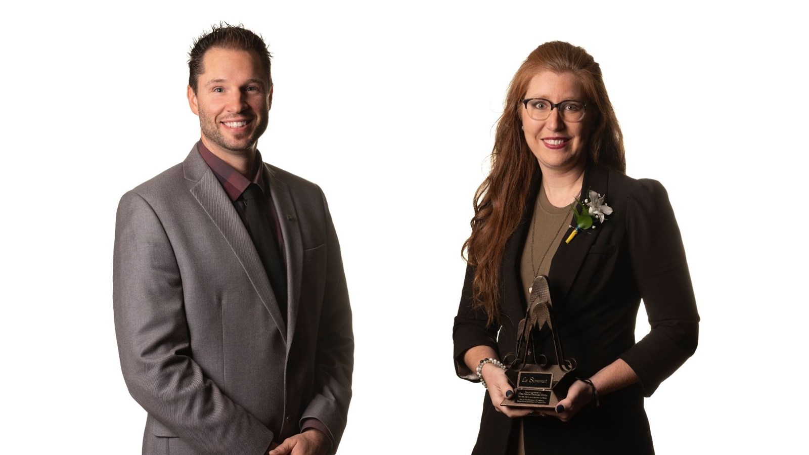Sommet Jeune personnalité d’affaires: Jérôme Gilbert, Promutuel Assurance, et Marie-Christine Cliche, lauréate du Sommet Jeune personnalité d’affaires.