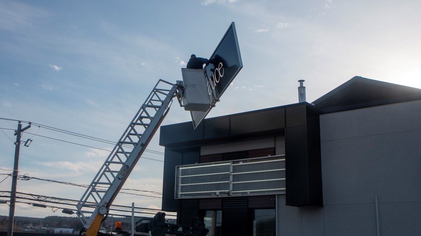 C'est hier au courant de l'après-midi que les affiches EnBeauce.com et Néomédia ont été installées sur le bâtiment commercial situé au 9085 boulevard Lacroix à Saint-Georges.