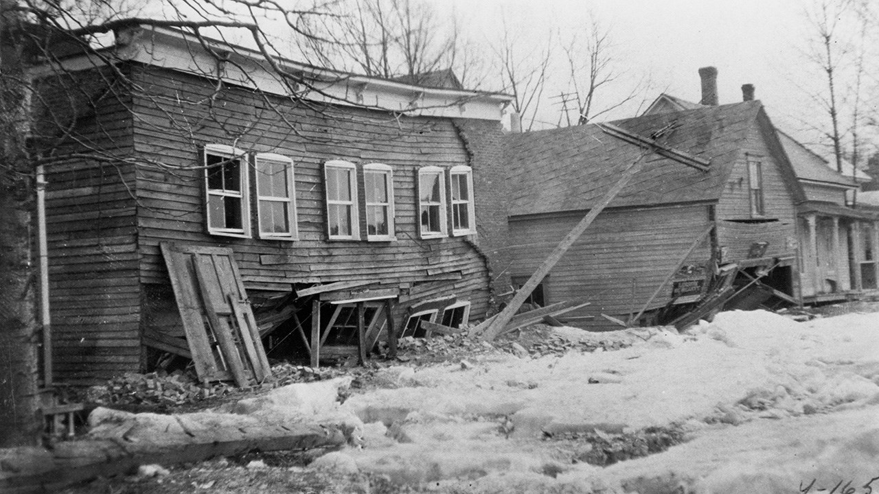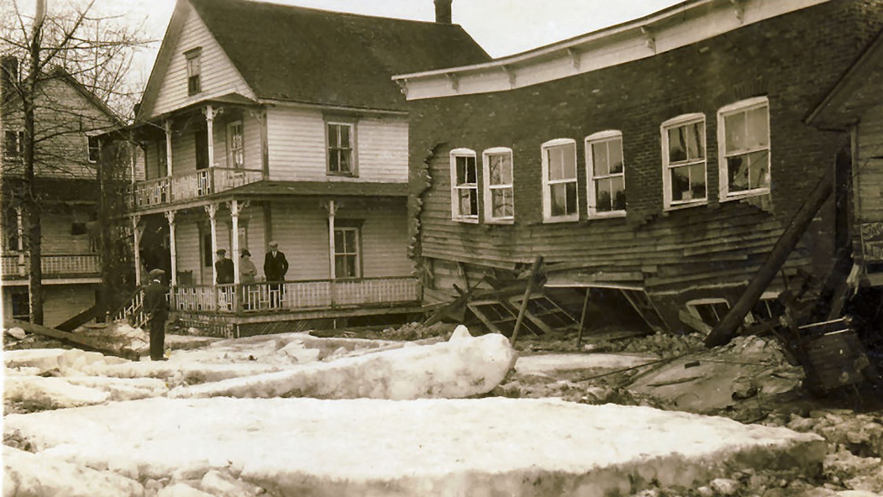 Polycarpe, un prénom qui n’est vraiment plus à la mode, mais il le fut il y a 100 ans. Celui-ci a eu un gros bâtiment (1re photo) situé sur ce qu’on appelait alors «le chemin d’en bas» (1re avenue), par opposition à la 2e avenue, qu’on appelait le «chemin d’en haut». Existait alors un métier disparu de nos jours, celui de charron, soit un fabriquant et réparateur de chariots, de charrettes et de grandes roues en bois cerclées de fer pour ces véhicules. M. Dion exerçait précisément ce métier et il avait aménagé un atelier à cet effet dans cet immeuble. Hélas, l’inondation de 1928 causa des dommages majeurs à cet édifice, comme on le voit aux photos 2 et 3. Même le revêtement de briques fut dévasté. Son voisin de droite, M. Jos Bolduc, qui avait sa boutique de forge juste à côté, a aussi subi de lourds dommages à son établissement lors de la même débâcle, comme ou le voit à la 2e photo. Polycarpe a reconstruit son immeuble et on y ajouta des pompes à essence (photo 4). Quelque temps plus tard, son fils Jos Dion (le père de l’ingénieur Louis Dion), qui était mécanicien, exploita cette «station-service» pendant quelques années. Juste à côté (au nord, à gauche sur la 3e photo), il y avait une maison qui fut plus tard la résidence de l’autre fils M. Gérard Dion, qui se présentait comme «mécanicien-dentiste» (qu’on appelle aujourd’hui un denturologiste). En 1940, le garage Dion fut loué à M. L.-P. Baril qui y établi son commerce pendant environ 5 ans. À noter qu’à cette époque, MM Jos Dion, L.-P. Baril et Ernest Bureau avaient tous les trois leurs résidences voisines dans la rue Saint-Gabriel (14e rue) du côté ouest. Vers 1955, Jos Dion vendit à M. Bureau son édifice commercial de la 1re avenue, que celui-ci transforma en épicerie (photo 5). Il l’exploita pendant 10 ans. Celle-ci fut ensuite vendu en 1966 à M. Guy Thibaudeau qui l’opéra jusqu’en 1992. Puis ce commerce demeura fermé et vacant pendant plusieurs années, jusqu’à ce qu’il soit démoli en 2016. En 2017, on a construit à cet endroit le premier d’une série de 18 imposants blocs à appartements. En résumé, l’édifice apparaissant sur les cinq photos était situé là où se trouve maintenant le premier bloc, soit le 12705 de la 1re avenue. Avec le barrage Sartigan qu’on a érigé en 1967 et le nouveau mur de soutènement qui borde ce secteur au centre-ville, les risques d’inondation semblable sont maintenant très minimes.