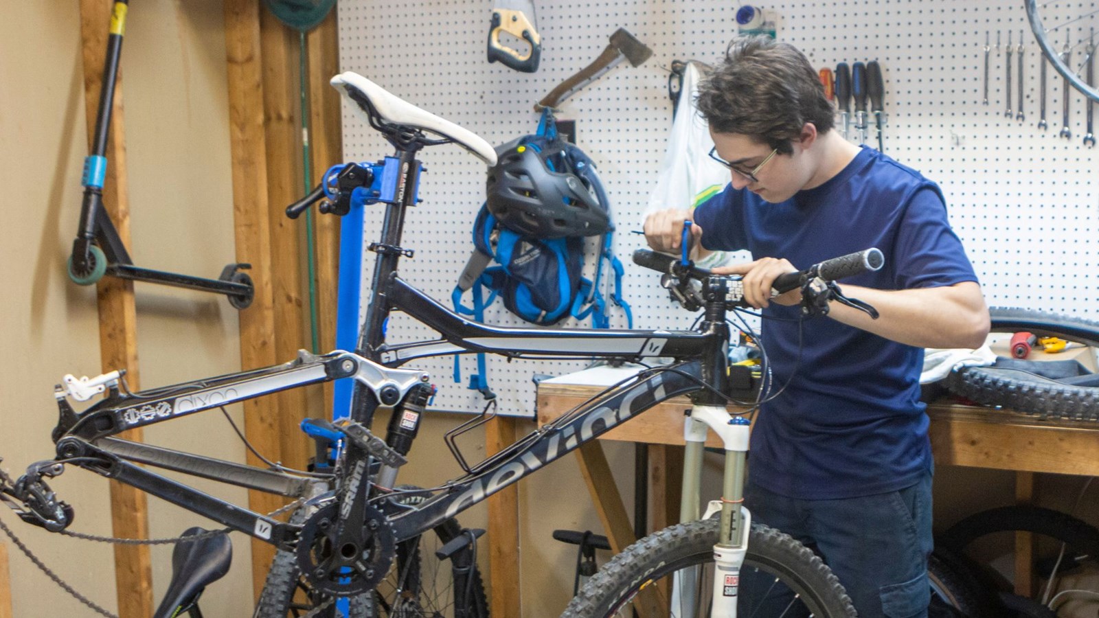 Son atelier est installé dans le garage de la maison familiale. Il peut aussi bien réparer des bicyclettes « à 120 piasses » que des engins haut-de-gamme. « Je peux presque tout faire », signale-t-il sans vantardise. Une partie de ses revenus sont réinvestis dans l'achat d'outillage.