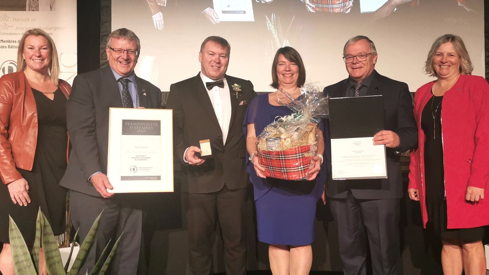 C’est devant près de 370 participants au 42e Souper des gens d’affaires de La Nouvelle-Beauce, qui s’est déroulé hier soir au Centre Caztel de Sainte-Marie, qu'Annette et Benoit Baillargeon ont été intronisés au sein du Club des Bâtisseurs de La Nouvelle-Beauce alors que François Faucher a reçu la distinction Personnalité d’affaires de l'année 2022.