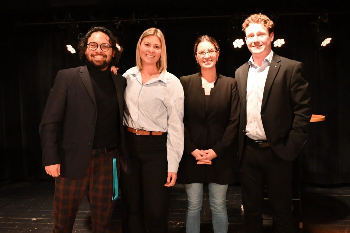 En collaboration avec l'aile jeunesse de la Chambre de commerce de Saint-Georges, trois entrepreneur∙e∙s émérites ont échangé avec la communauté étudiante lors d'un panel de discussion abordant l’avenir et les défis pour les entreprises de demain ainsi que le repreneuriat. Les panélistes Olivier Groleau de Construction JL Groleau, Sabrina Paré de Olives et gourmandises, et Virginie Gosselin de PGJ – Tirage de joints & enduit acrylique ont partagé leurs visions sur ce que signifie être un employeur de qualité, leurs aspirations entrepreneuriales, les défis de main-d’œuvre et de l’intelligence artificielle, en plus de fournir des conseils avisés pour les étudiants et étudiantes souhaitant se lancer en affaires dans le but d’avoir un jour leur entreprise.