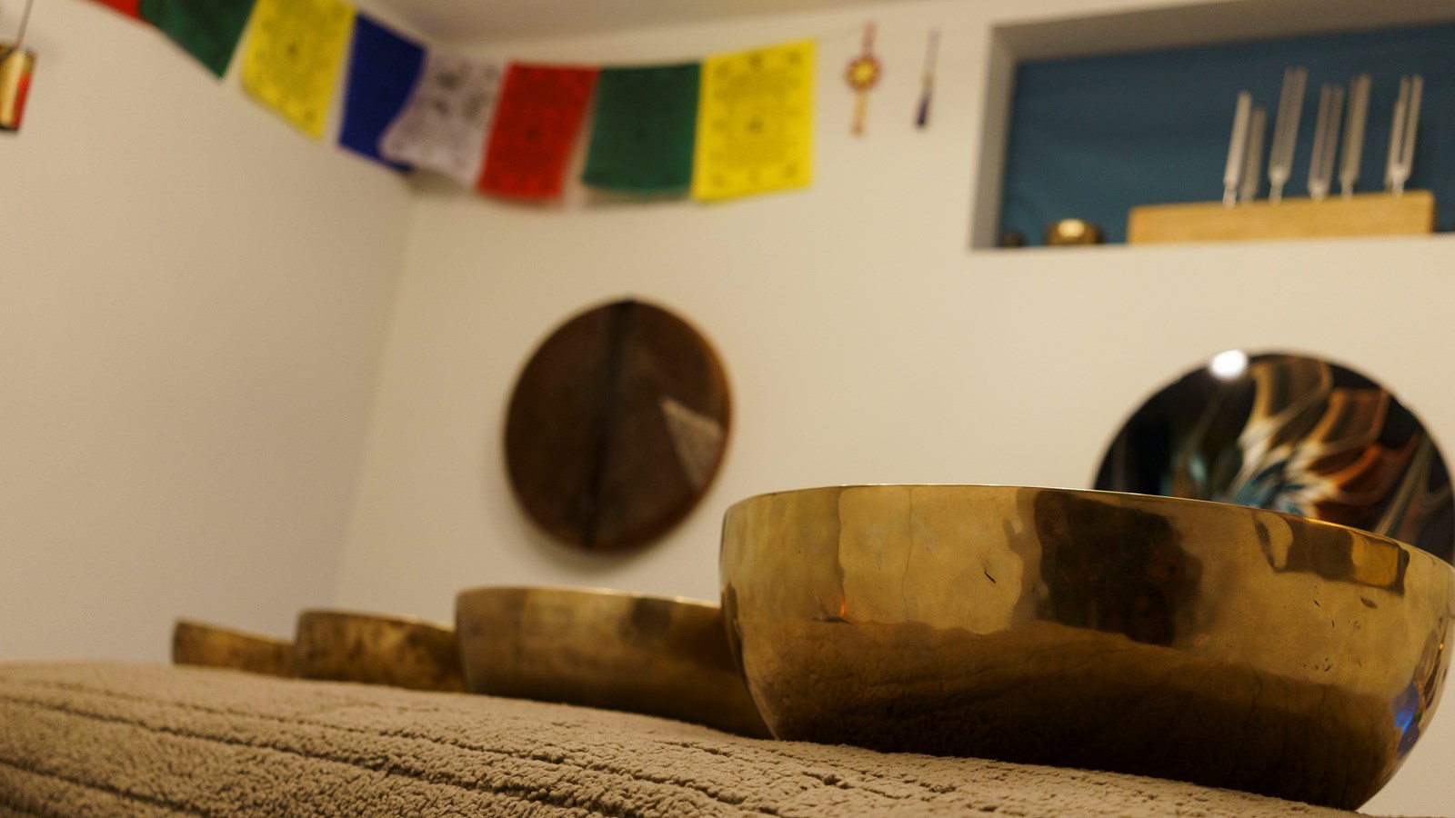 Il rééquilibre aussi les chakras par le biais de séances de massage vibratoire à l’aide de bol tibétain qu’il fait vibrer et chanter sur et autour de la personne. Il s’agit d’une expérience vibratoire intense permettant une grande recharge énergétique et un lâcher-prise total avec le mental.