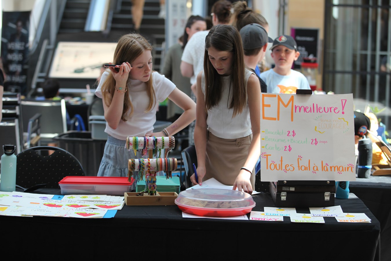 Placés au milieu du centre commercial, les jeunes entrepreneurs ont proposé des produits très variés. Il était possible de déguster des pop-corn, boire une limonade, acheter des bijoux, des produits de beauté, des livres ou encore des plants de tomates.