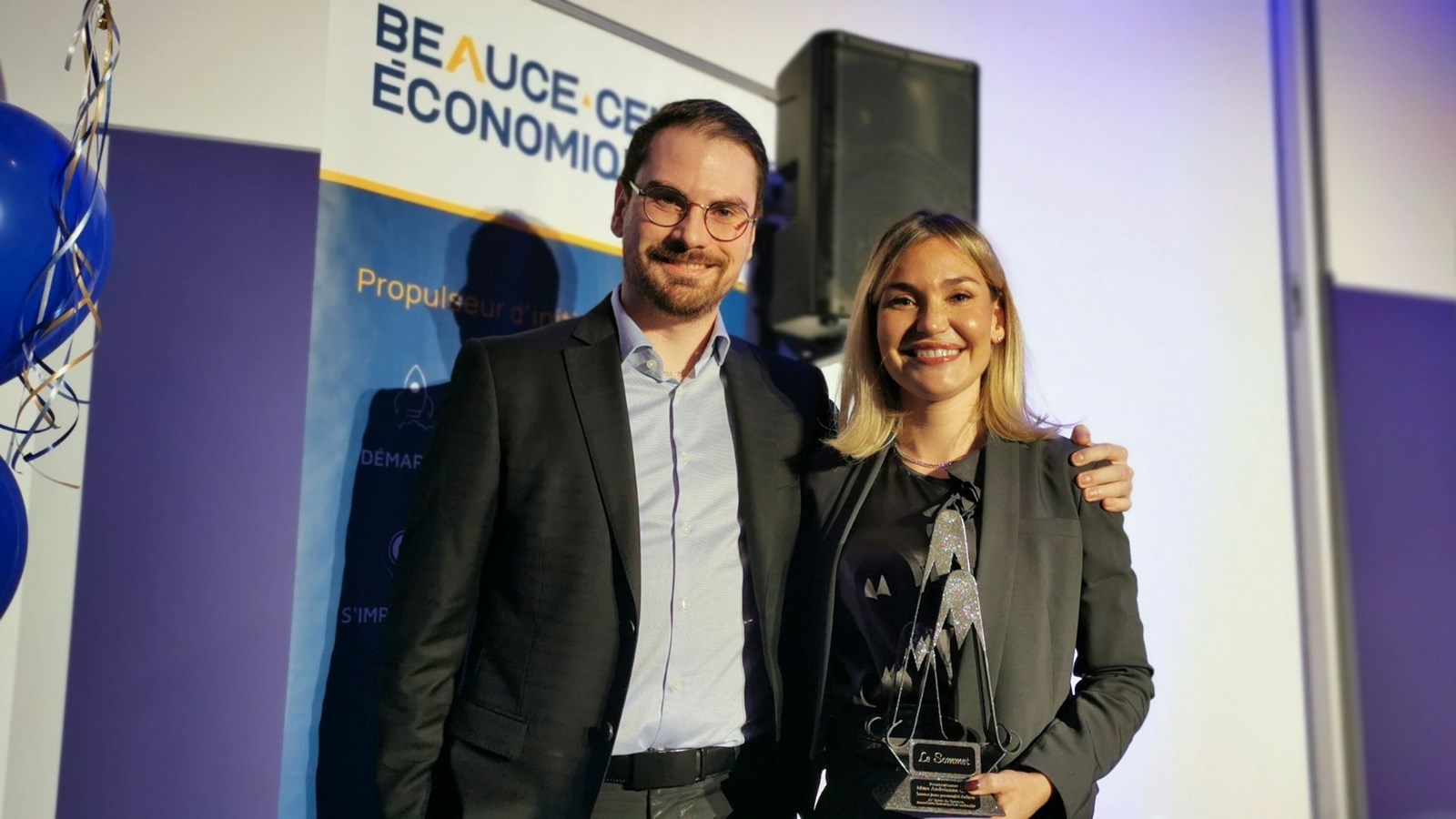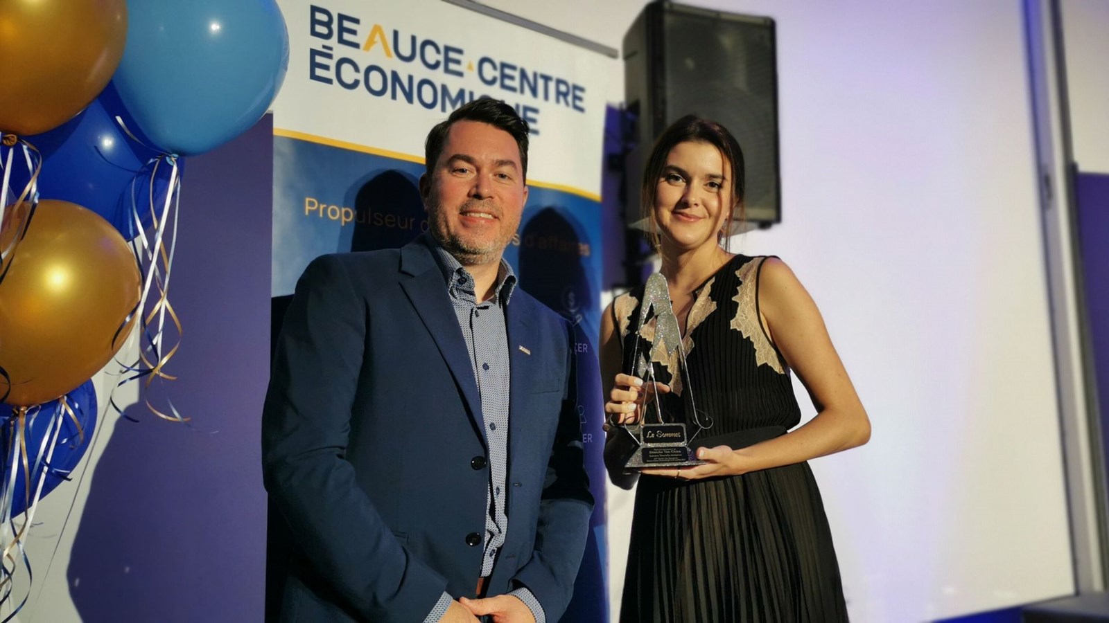 La Beaucevilloise Andréanne Caron est la Jeune personnalité d’affaires de l'année. Son prix lui a été remis par son frère, Jean-Simon Caron, de la Financière Banque Nationale – Groupe financier Alain D’Anjou Lessard.