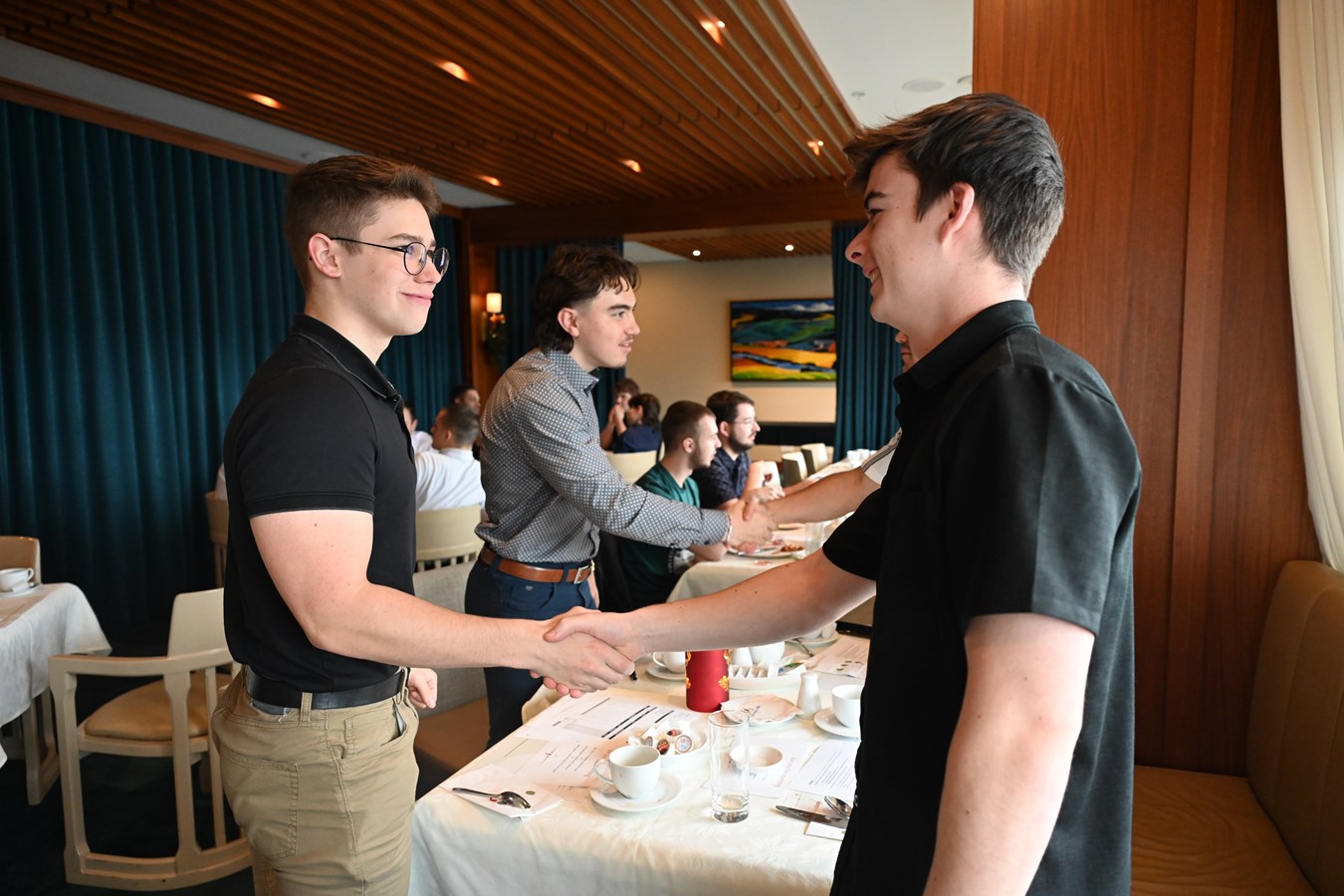 Cette activité a permis aux étudiants de vivre une simulation de négociation entre le Cégep Beauce-Appalaches et Altrum, une entreprise spécialisée en reconnaissance et en engagement organisationnel. Les discussions, menées exclusivement en anglais, leur ont offert l’occasion de mettre en pratique leurs compétences en communication, négociation et gestion dans un contexte réaliste. Même le personnel du restaurant du Georgesville a contribué à l’immersion linguistique en faisant le service uniquement en anglais.