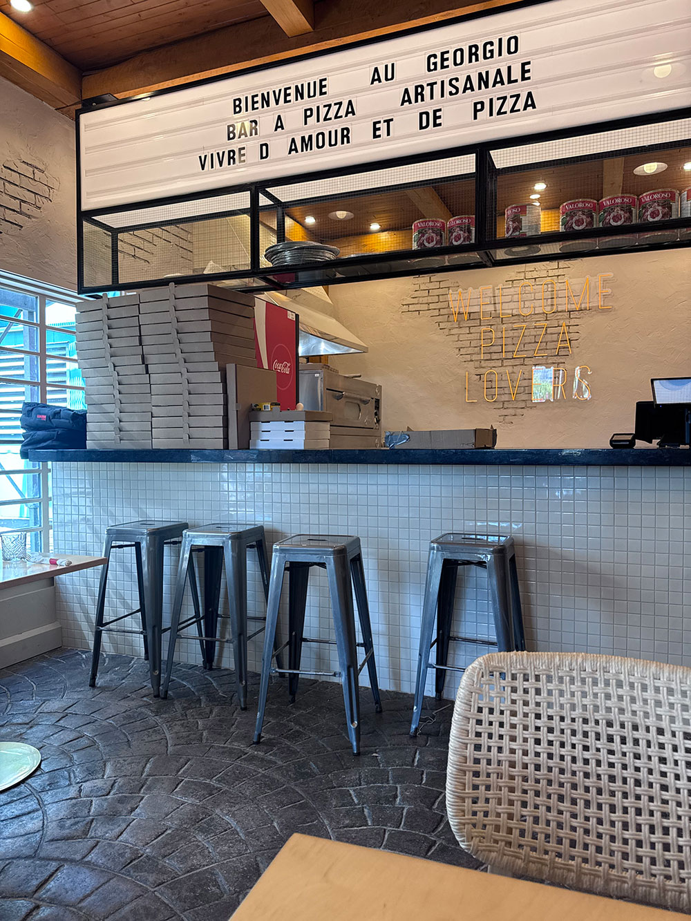 L’établissement propose aussi une terrasse saisonnière et un petit bar, créant un espace convivial pour manger sur place tout en restant fidèle à sa mission principale : rendre la pizza maison accessible à tous, rapidement et efficacement.