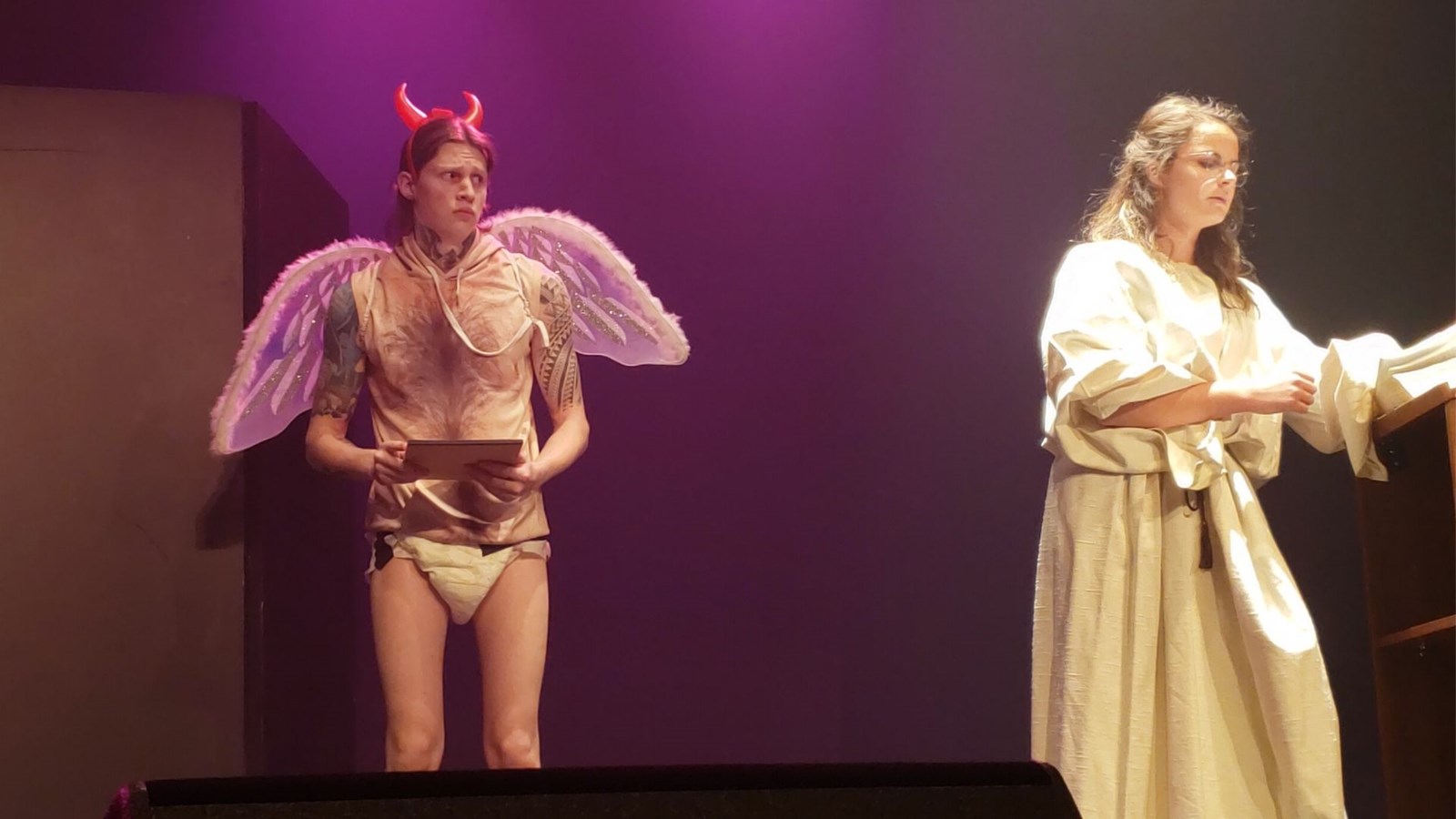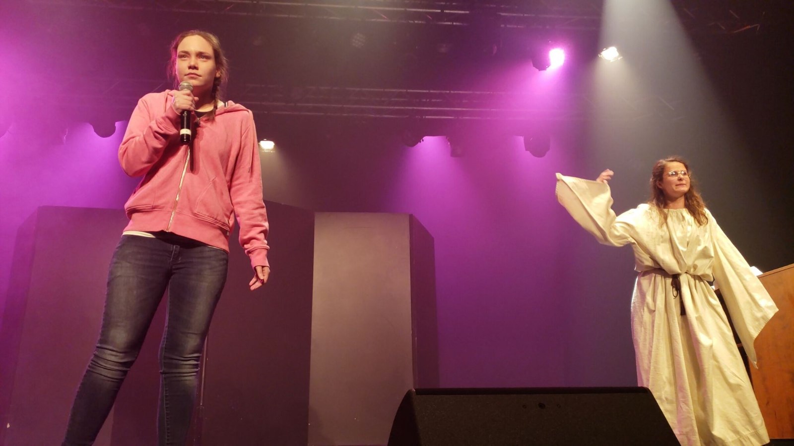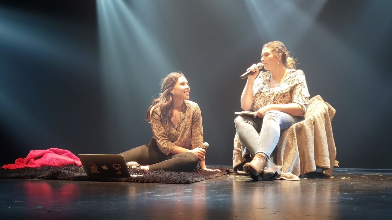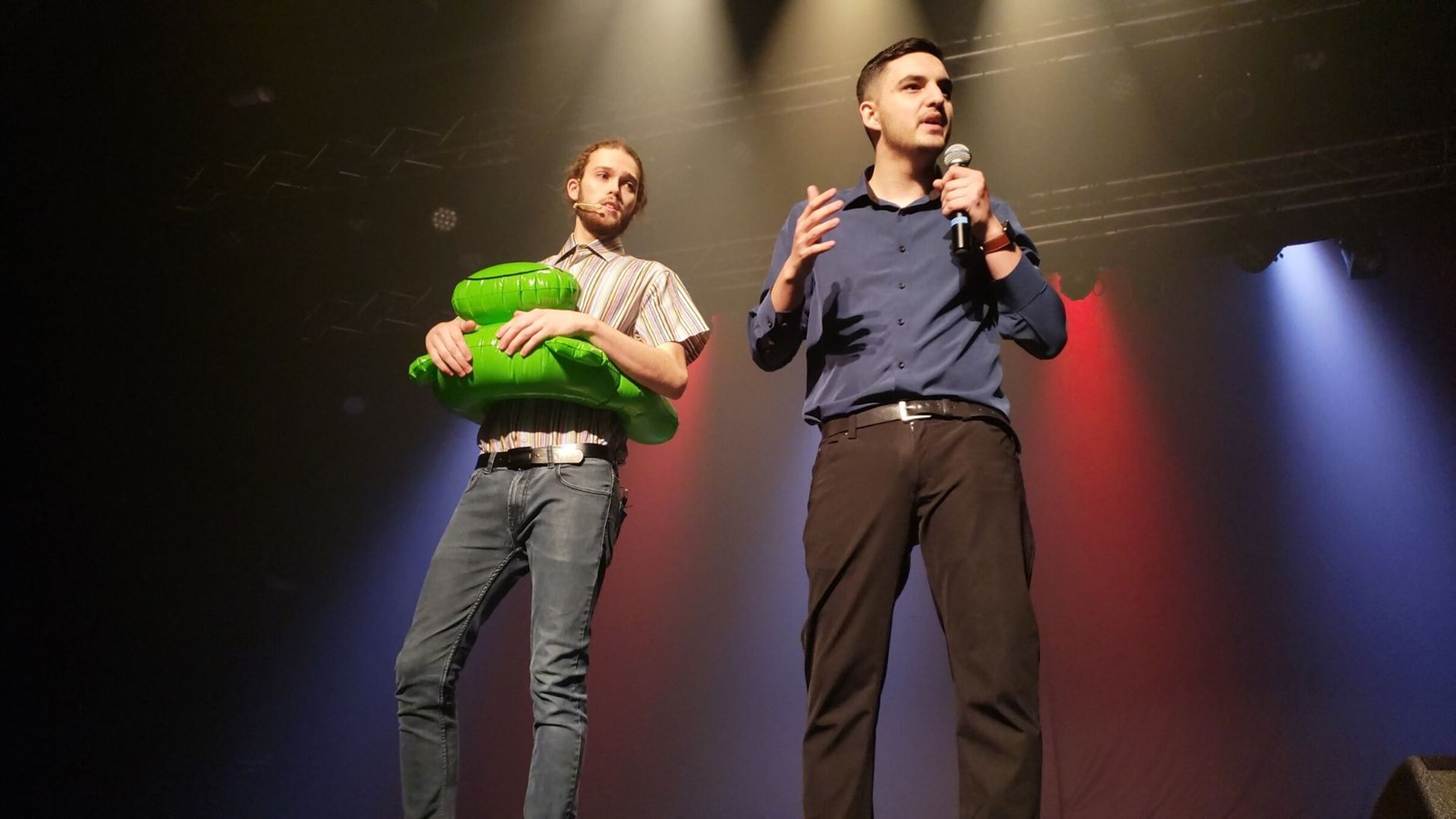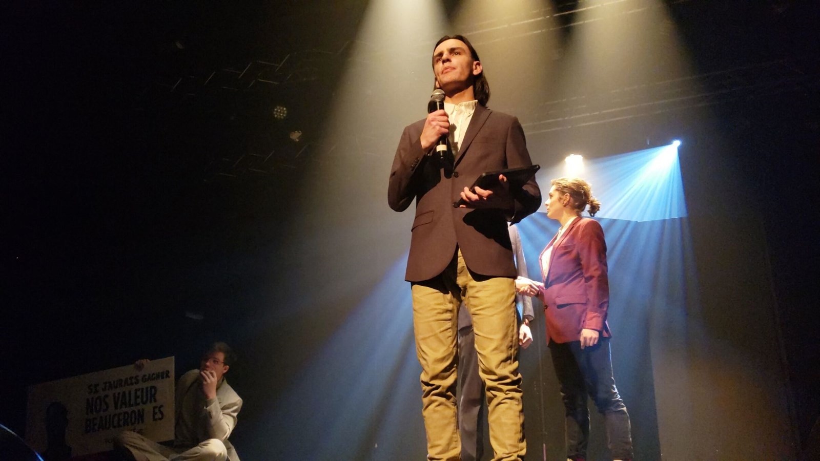 Après la musique et la chanson, les applaudissements ont laissé place à des fous rires avec TIK et TOK. Les deux humoristes Maxime Roy et Olivier Létourneau ont débuté leur performance en se moquant des fameuses « estacades » de Beauceville. Le groupe UNE TOUCHE DE BOURGOGNE formé de Zoïc Bélanger, Cynthia Boulet, Jessy Chabot-Lessard, Émilie Nadeau et Amélie Roy ont présenté l’une de leurs propres créations, « Tellement cute » dans une atmosphère chaleureuse. Après les sourires, les comédiens, Déreck Boudreault-Drouin et Olivier Fortier, ont fait ressentir un certain mal-être avec la présentation d’un drame racontant l’histoire d’un schizophrène avec son docteur. Leur interprétation était si juste que l’on a eu l’impression de voir une scène réelle.