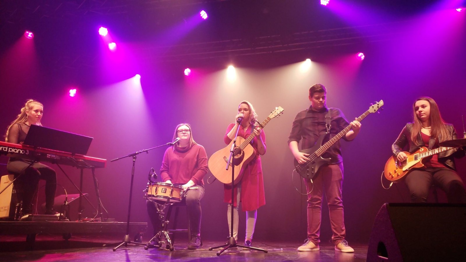 Le duo HOMMAGE À GINETTE RENO, composé de Johnny Faucher et Félix Brunelle a surpris la salle en offrant une chanson des Colocs et non de la grande chanteuse. Tassez-vous de l’là a fait taper des mains les spectateurs. C’est leur propre composition que le Groupe IMPULSION de Cynthia Boulet, Audrey Fortin, Émile Gagné, Arianne Labbé, Maxime Poulin et Nicolas Poulin a conquis les gens présents. Le solo de guitare du début a marqué les esprits.
