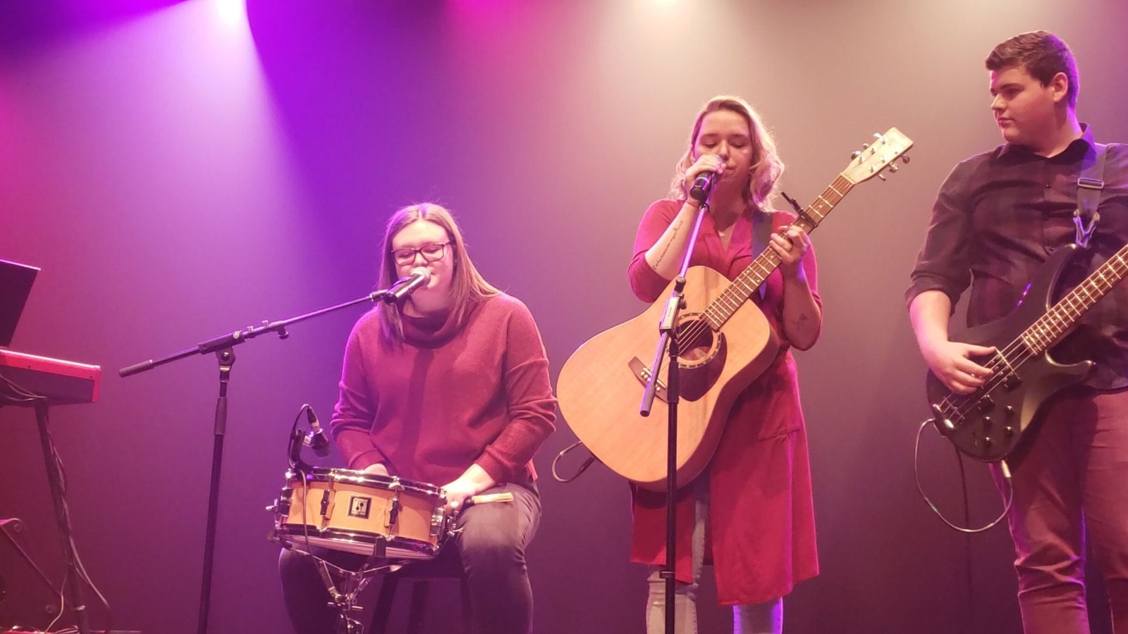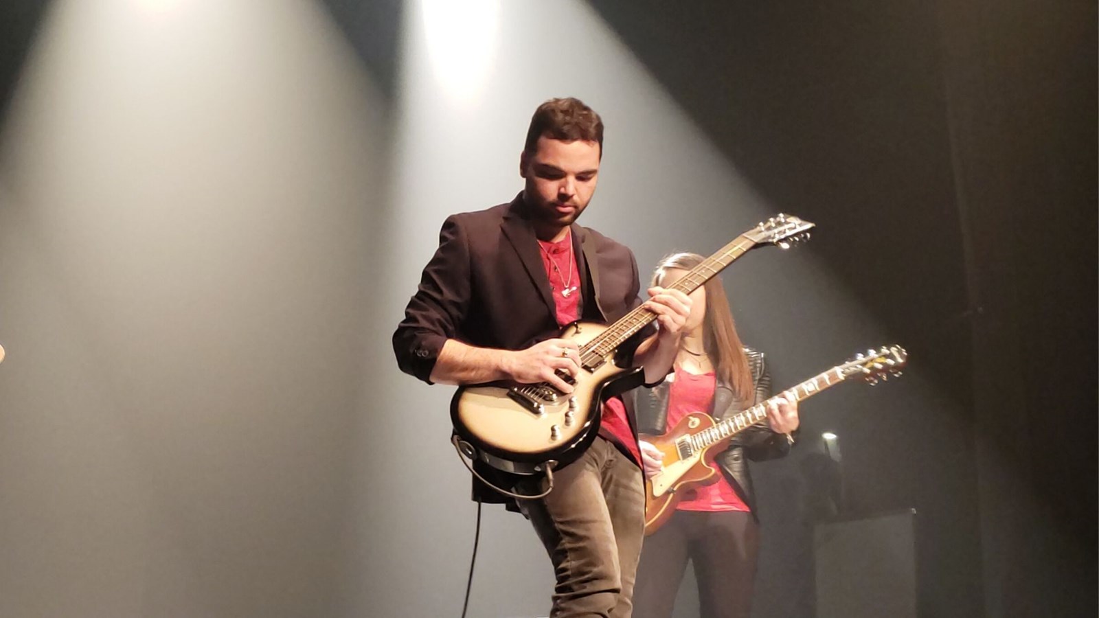 Le duo d’interprètes formé d’Audrey Fortin et de Corry Vitry a offert un beau mélange de chansons francophones terminant en cœur et en émotions le succès de Vincent Vallière, « On va s’aimer encore ». Il s’est suivi des deux musiciennes Cynthia Boulet et Amélie Roy, jouant d’instruments contrastants, du piano classique et de la guitare électrique, mais qui a donné un numéro harmonieux. Amaëlle Laflamme du Campus de Sainte-Marie, d’une voix émouvante et douce a fait vivre un beau moment à la salle avec la chanson « Encore une nuit » de Céline Dion.