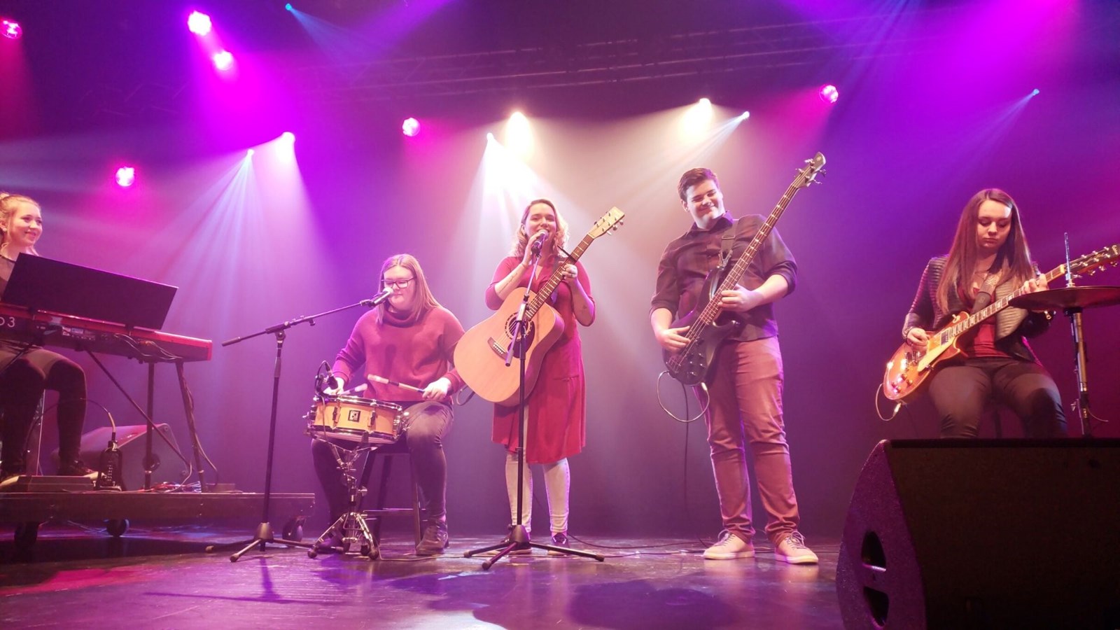 Le Groupe IMPULSION composé de de Cynthia Boulet, Audrey Fortin, Émile Gagné, Arianne Labbé, Maxime Poulin et Nicolas Poulin